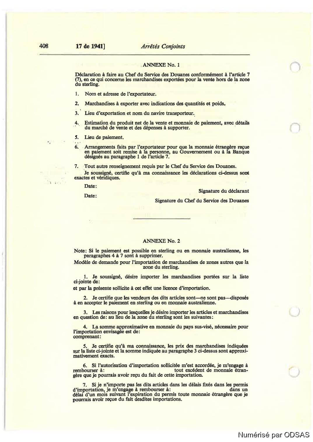 7. Tout uutn renseignement requis par le Uni“ du Service des Douanes.