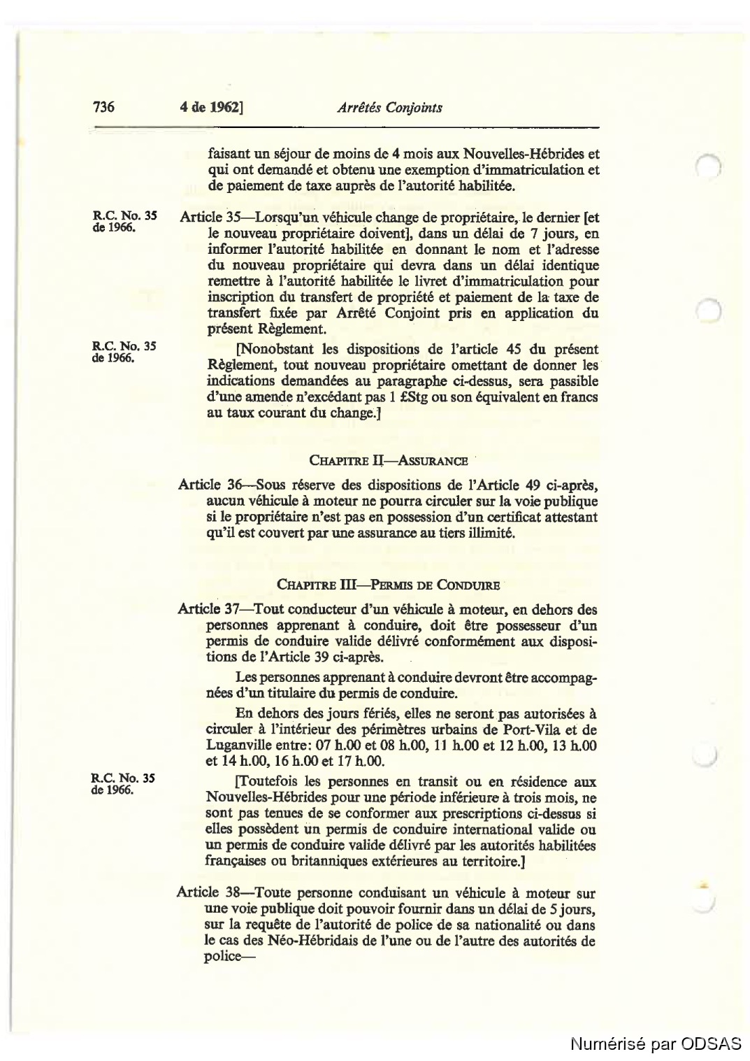 Quote this document Commissaires, Résidents 1973 [accessed: 2026/1/22]. "Règlementation Conjointe des Nouvelles-Hébrides, Tome 2" (Object Id: 197835). In Règlementation Conjointe des Nouvelles-Hébrides, Tome 2. ODSAS: https://www.odsas.net/object/197835.