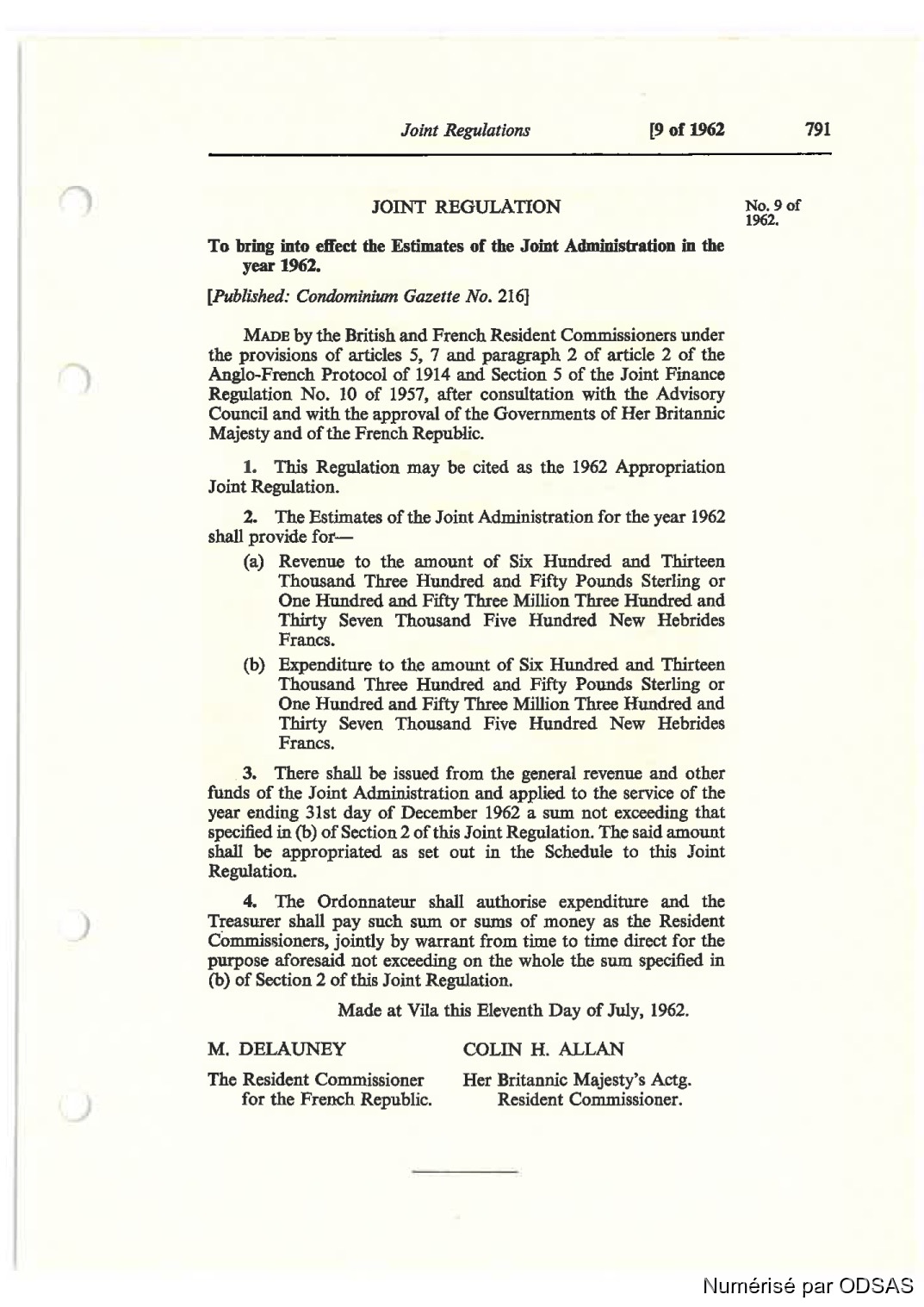 Règlementation Conjointe des Nouvelles-Hébrides...