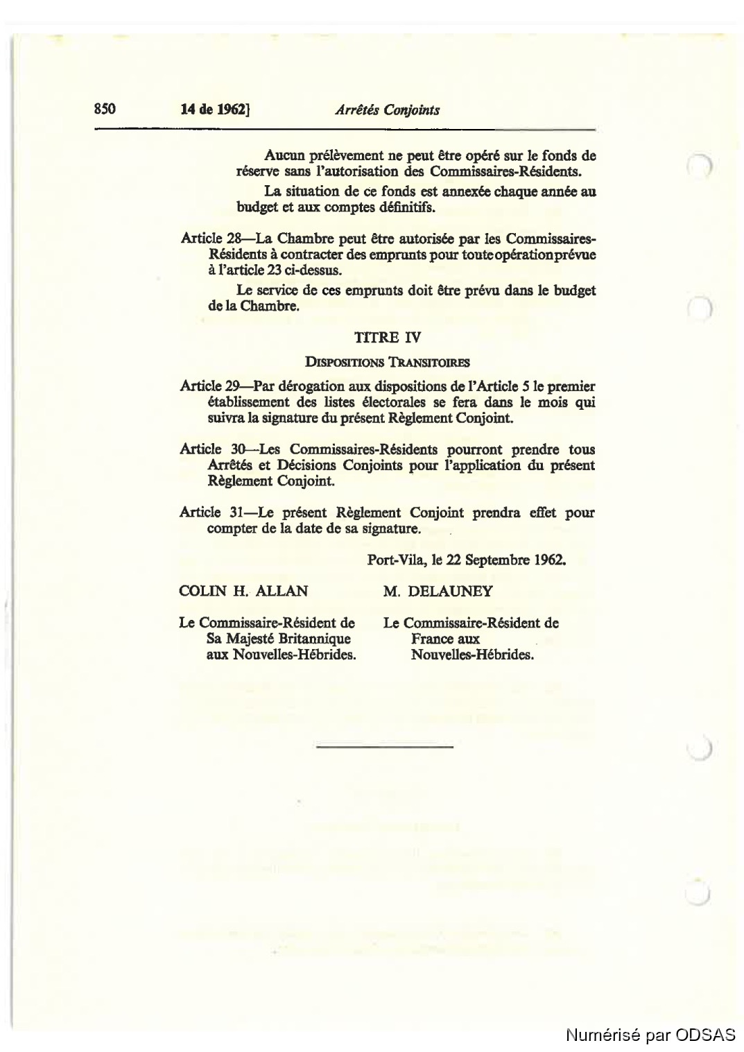Règlementation Conjointe des Nouvelles-Hébrides...