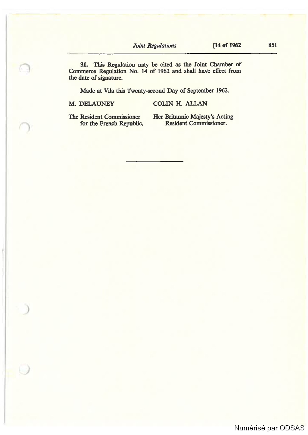 Règlementation Conjointe des Nouvelles-Hébrides...