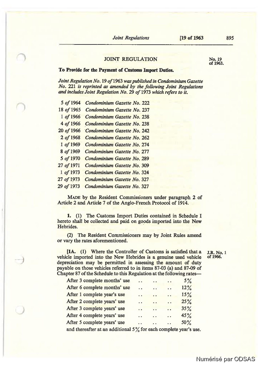 Règlementation Conjointe des Nouvelles-Hébrides...