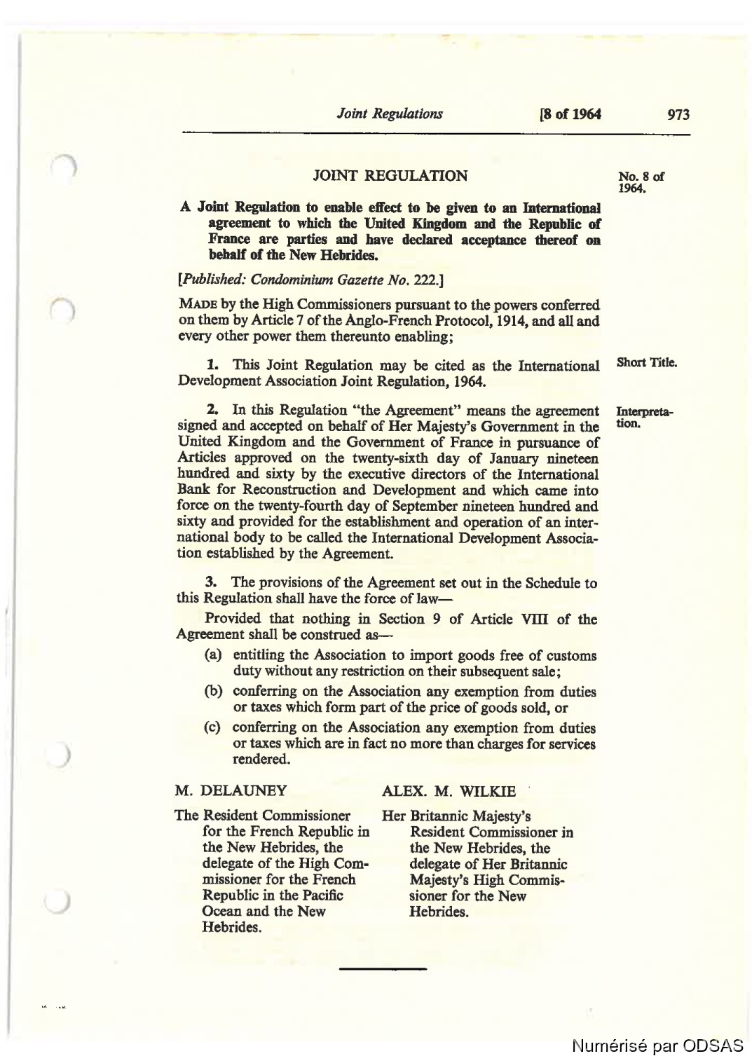Quote this document Commissaires, Résidents 1973 [accessed: 2026/1/22]. "Règlementation Conjointe des Nouvelles-Hébrides, Tome 2" (Object Id: 198072). In Règlementation Conjointe des Nouvelles-Hébrides, Tome 2. ODSAS: https://www.odsas.net/object/198072.