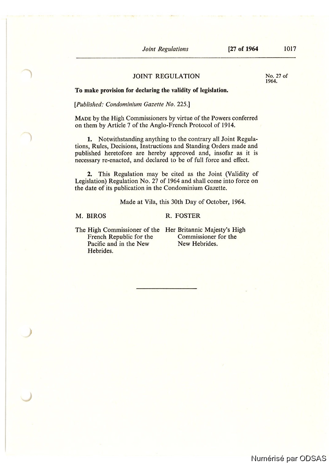 Règlementation Conjointe des Nouvelles-Hébrides...