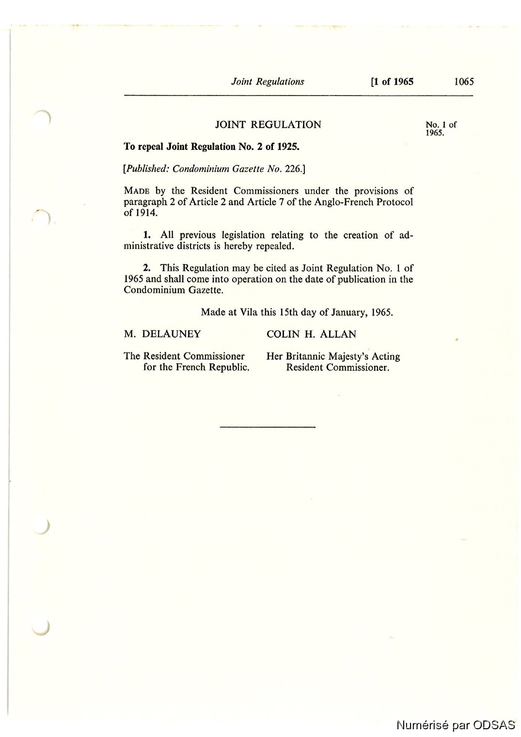 Règlementation Conjointe des Nouvelles-Hébrides...
