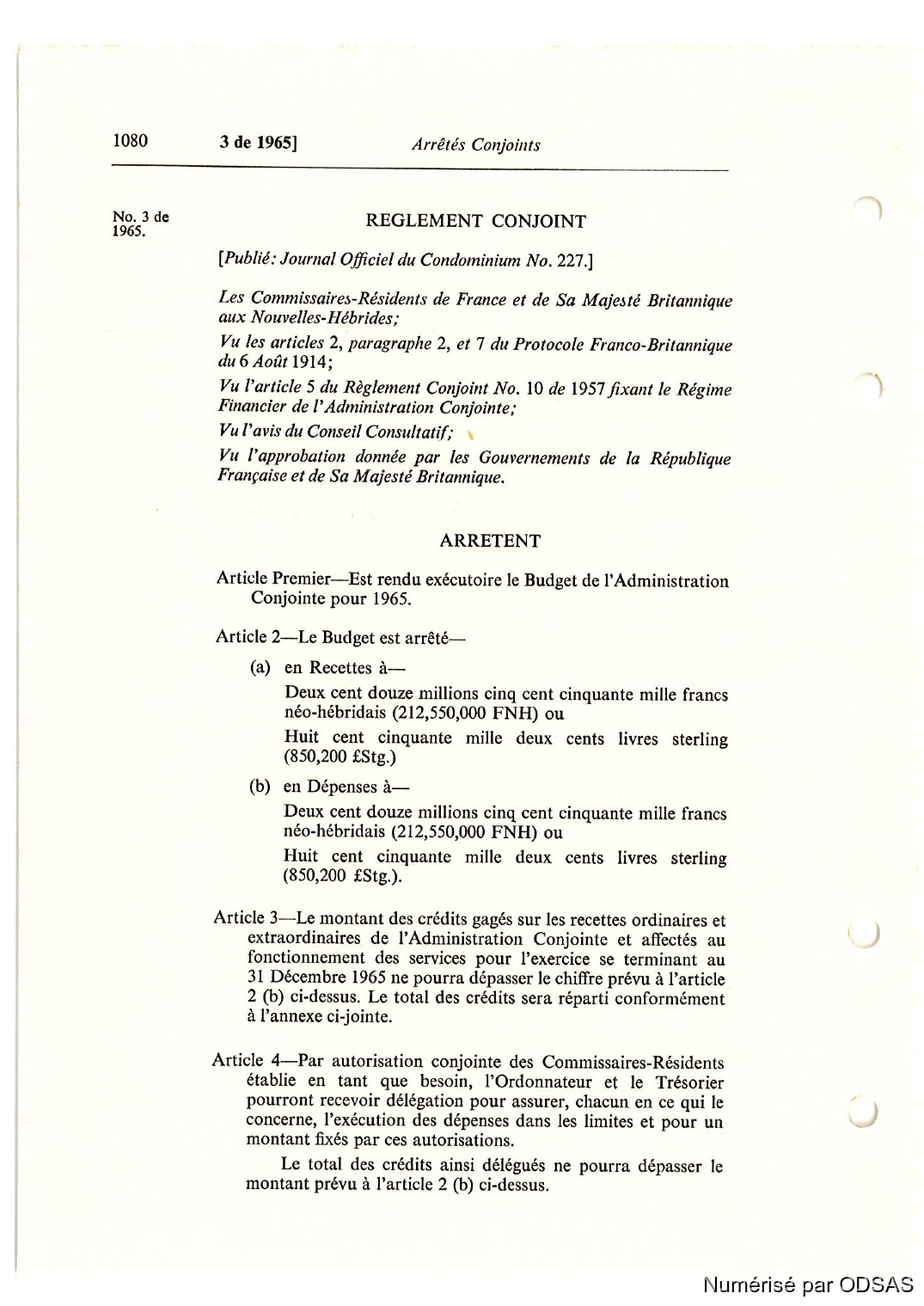 Règlementation Conjointe des Nouvelles-Hébrides...