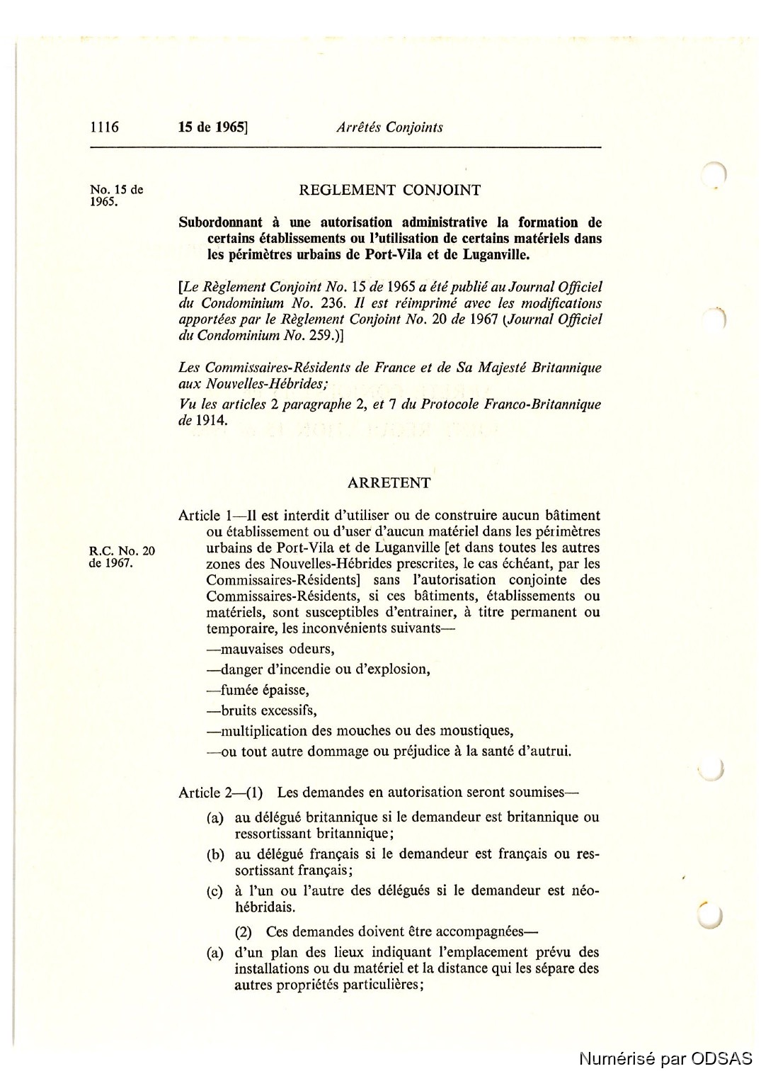 Règlementation Conjointe des Nouvelles-Hébrides...
