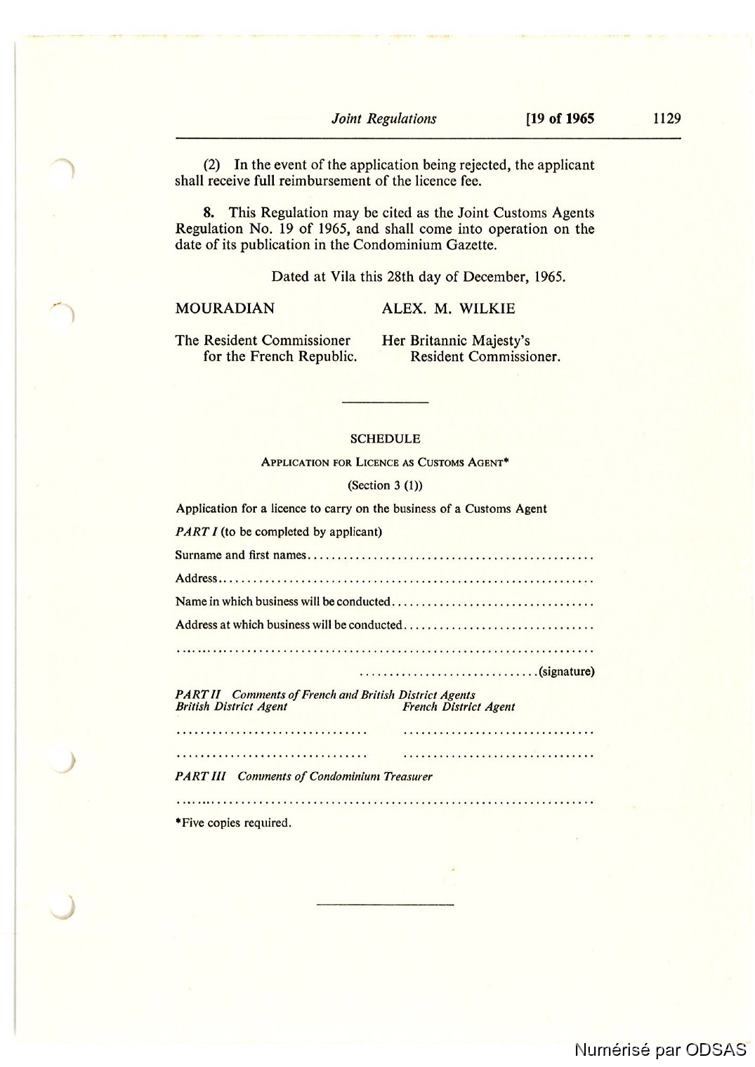 Règlementation Conjointe des Nouvelles-Hébrides...