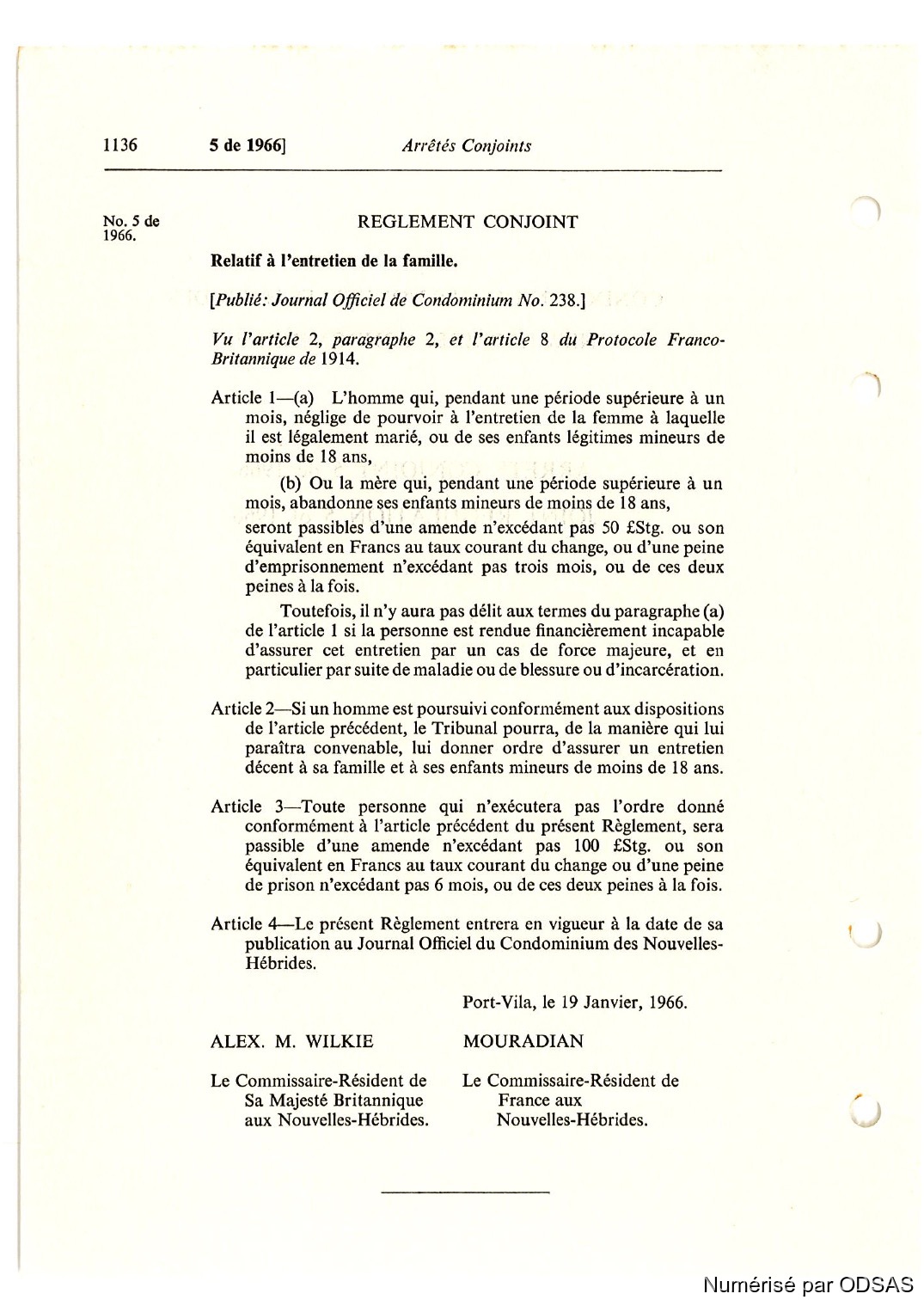 Règlementation Conjointe des Nouvelles-Hébrides...