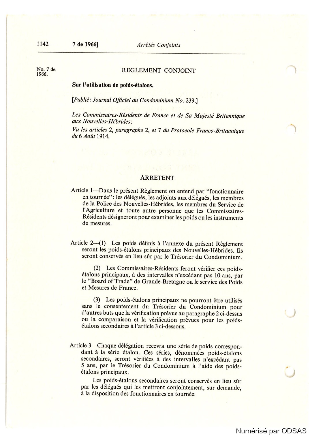 Règlementation Conjointe des Nouvelles-Hébrides...