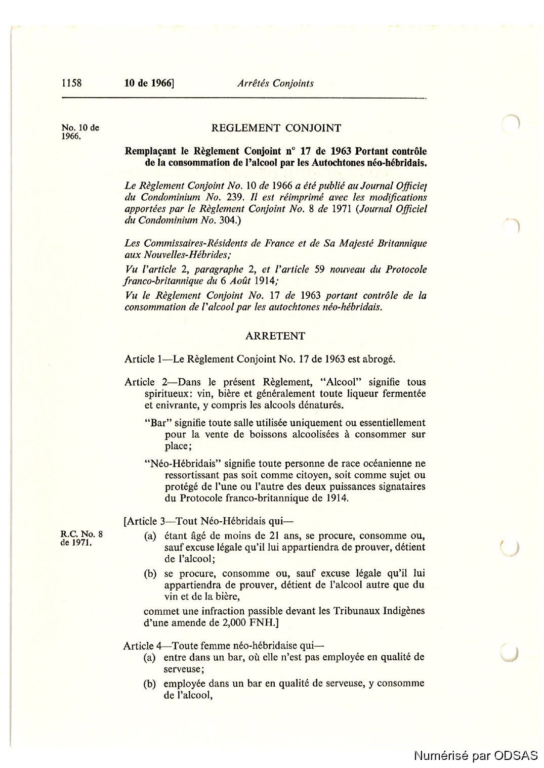 Règlementation Conjointe des Nouvelles-Hébrides...