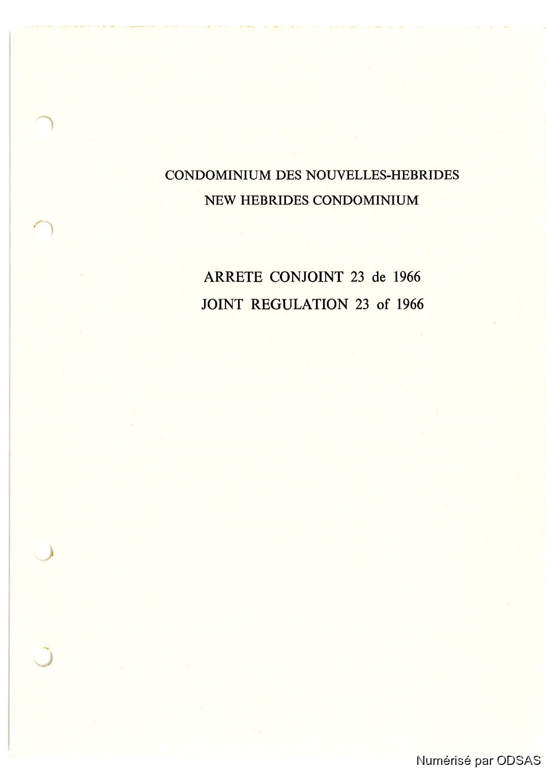 Règlementation Conjointe des Nouvelles-Hébrides...