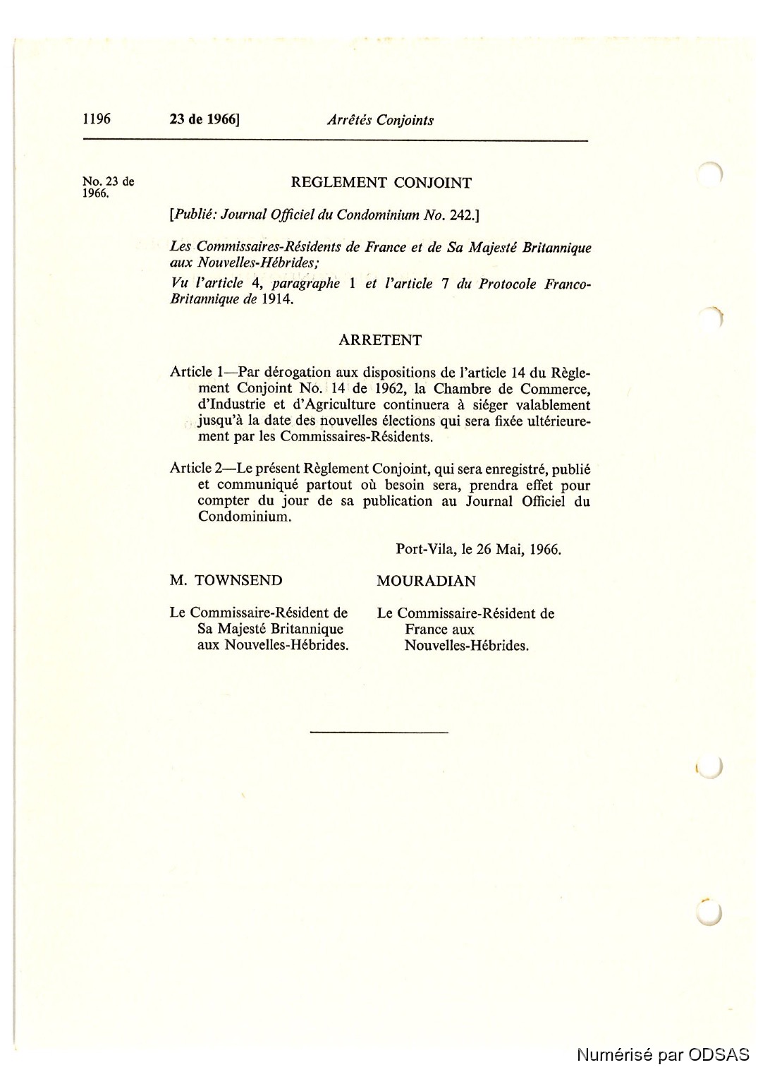Commissaires, Résidents 1973 [accessed: 2026/1/22]. "Règlementation Conjointe des Nouvelles-Hébrides, Tome 2" (Object Id: 198295). In