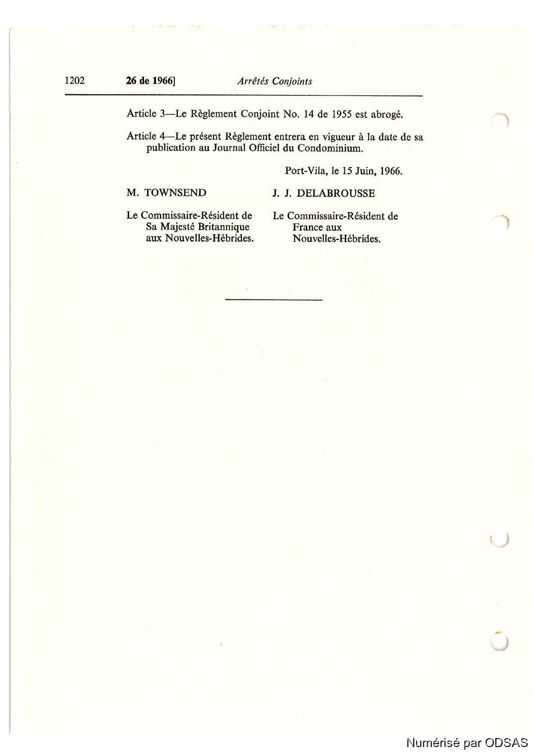 Quote this document Commissaires, Résidents 1973 [accessed: 2026/4/19]. "Règlementation Conjointe des Nouvelles-Hébrides, Tome 2" (Object Id: 198301). In Règlementation Conjointe des Nouvelles-Hébrides, Tome 2. ODSAS: https://www.odsas.net/object/198301.