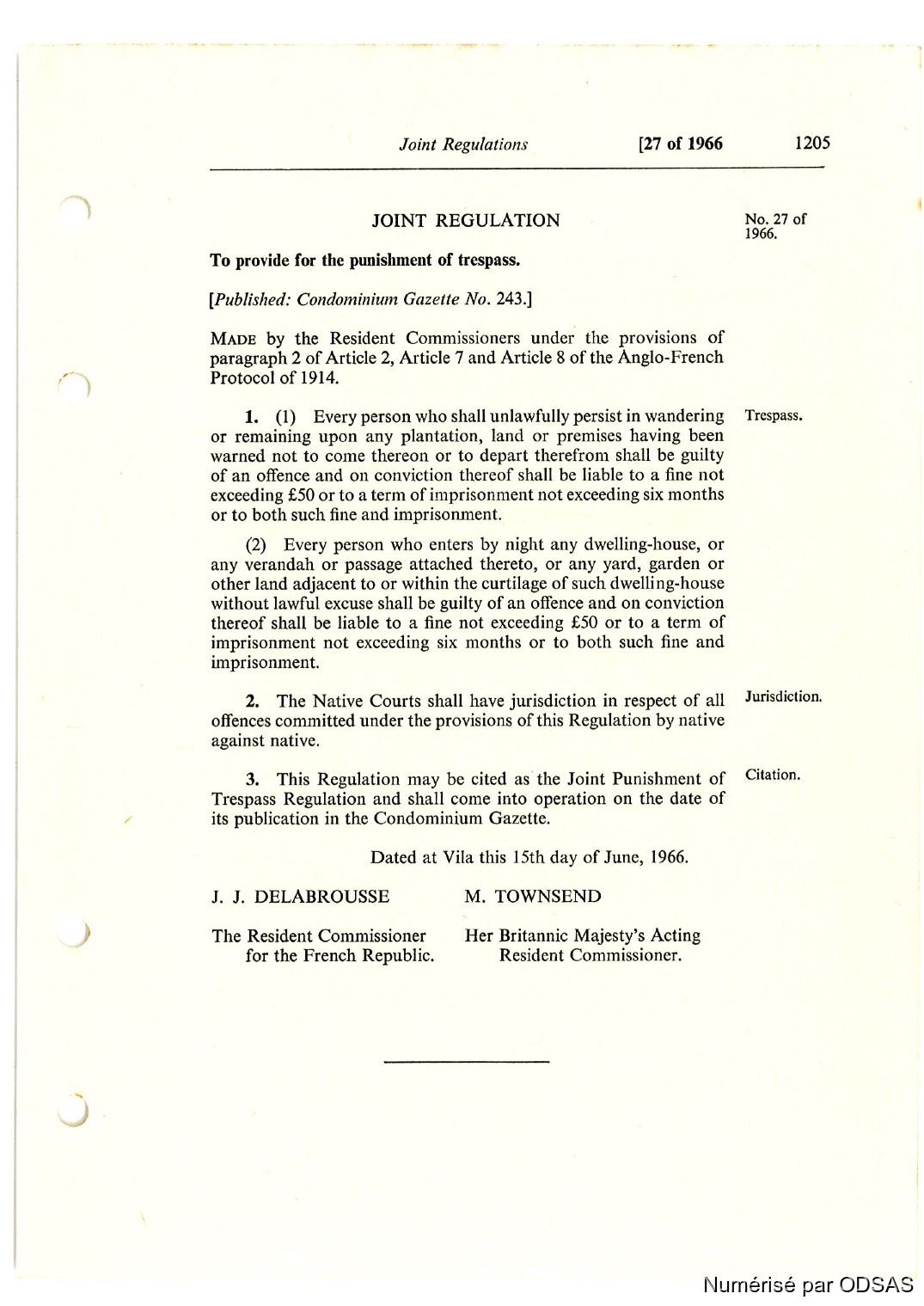 Commissaires, Résidents 1973 [accessed: 2026/4/18]. "Règlementation Conjointe des Nouvelles-Hébrides, Tome 2" (Object Id: 198304). In