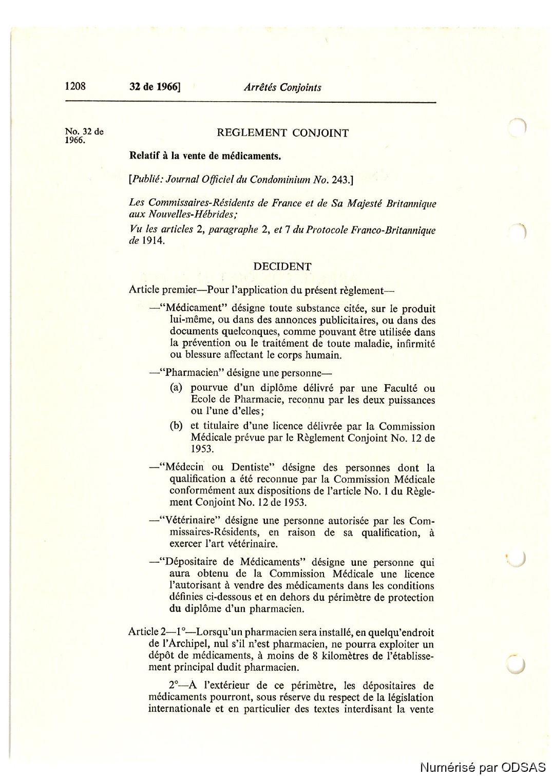 Règlementation Conjointe des Nouvelles-Hébrides...