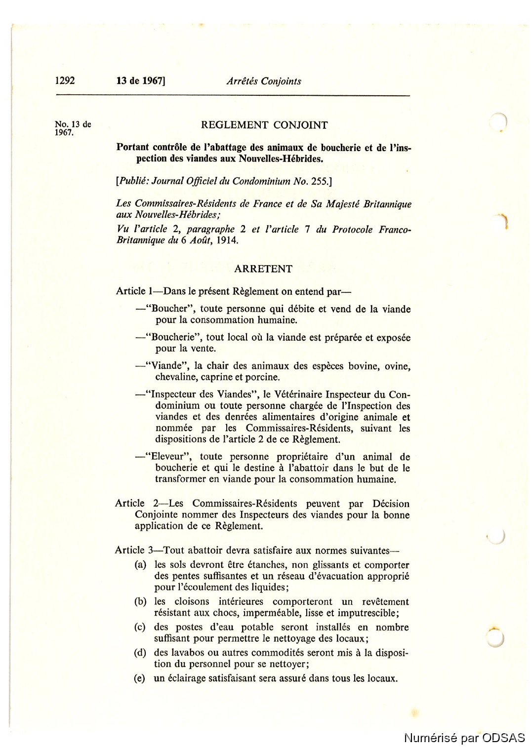 Règlementation Conjointe des Nouvelles-Hébrides...