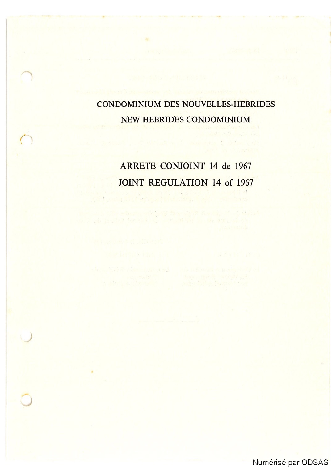 Règlementation Conjointe des Nouvelles-Hébrides...
