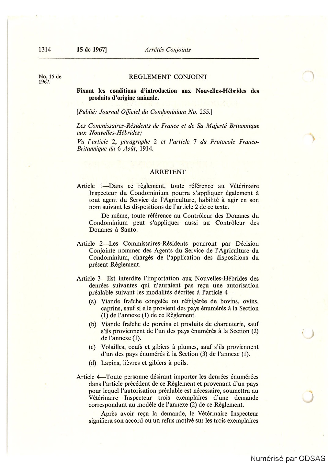 Règlementation Conjointe des Nouvelles-Hébrides...