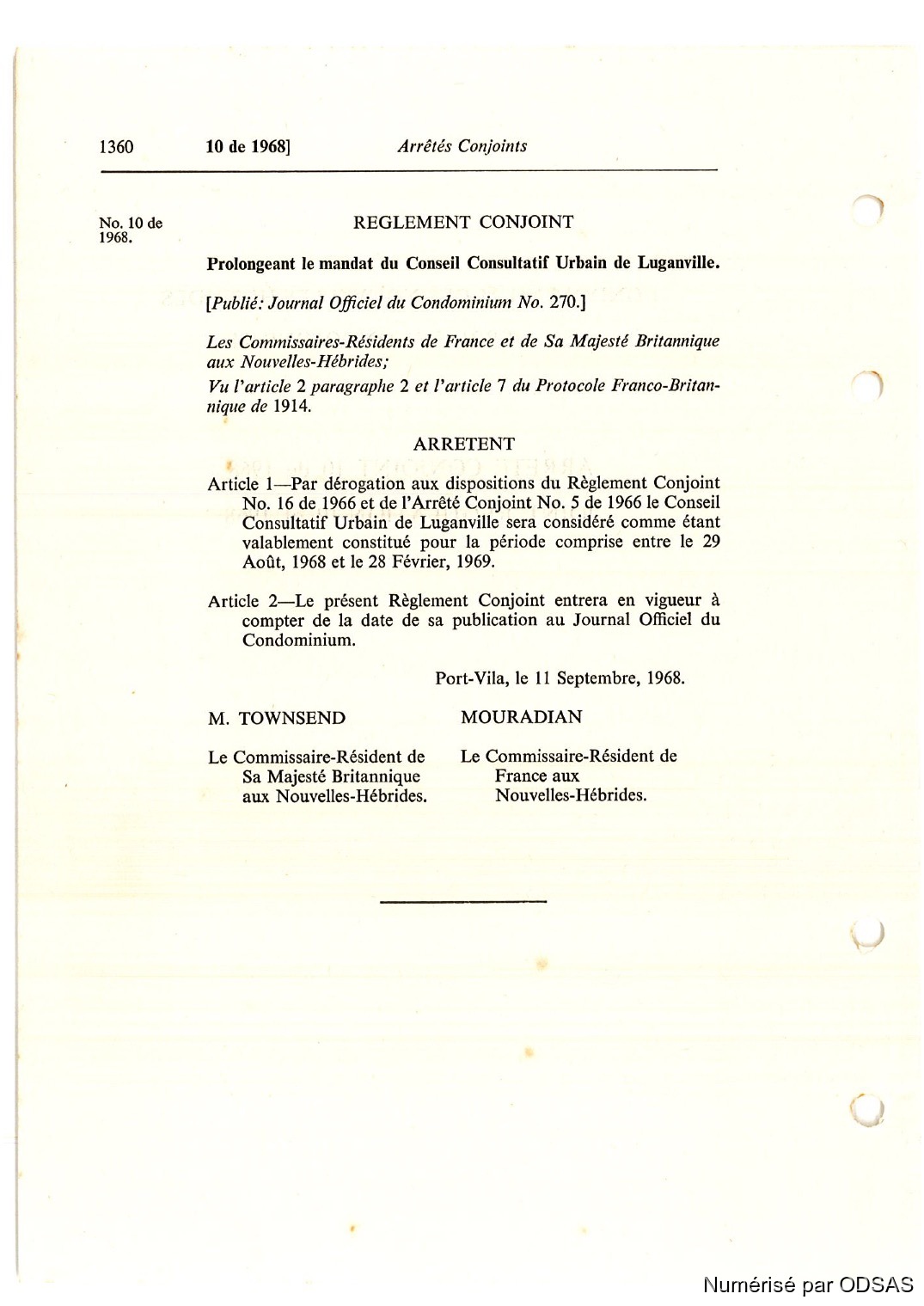 Règlementation Conjointe des Nouvelles-Hébrides...