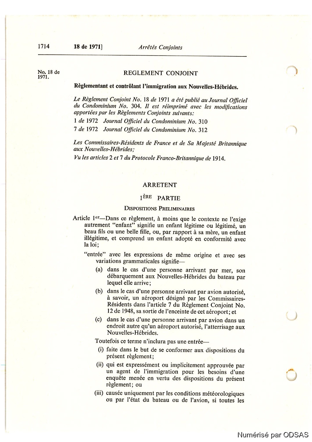 Règlementation Conjointe des Nouvelles-Hébrides...