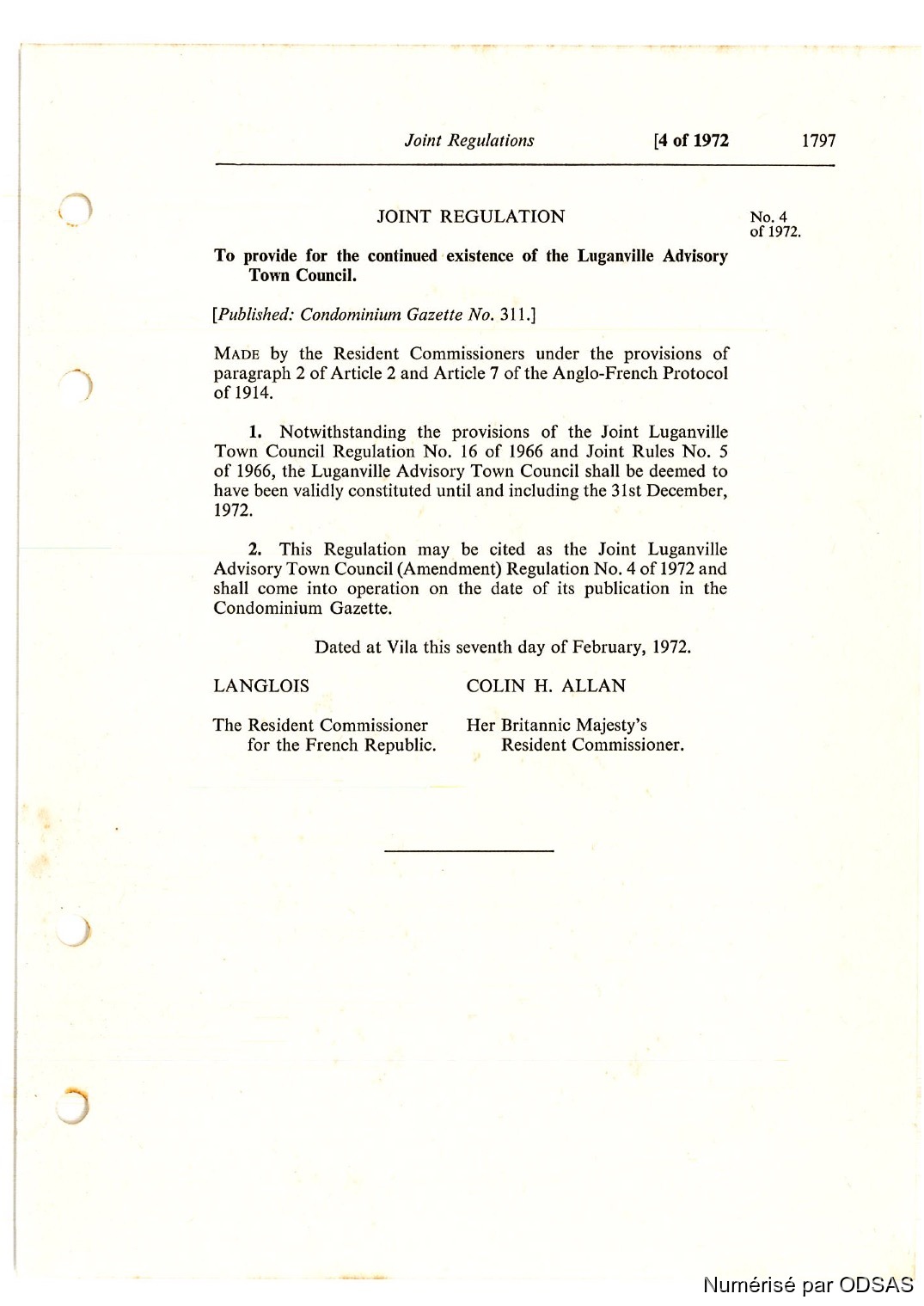 Règlementation Conjointe des Nouvelles-Hébrides...