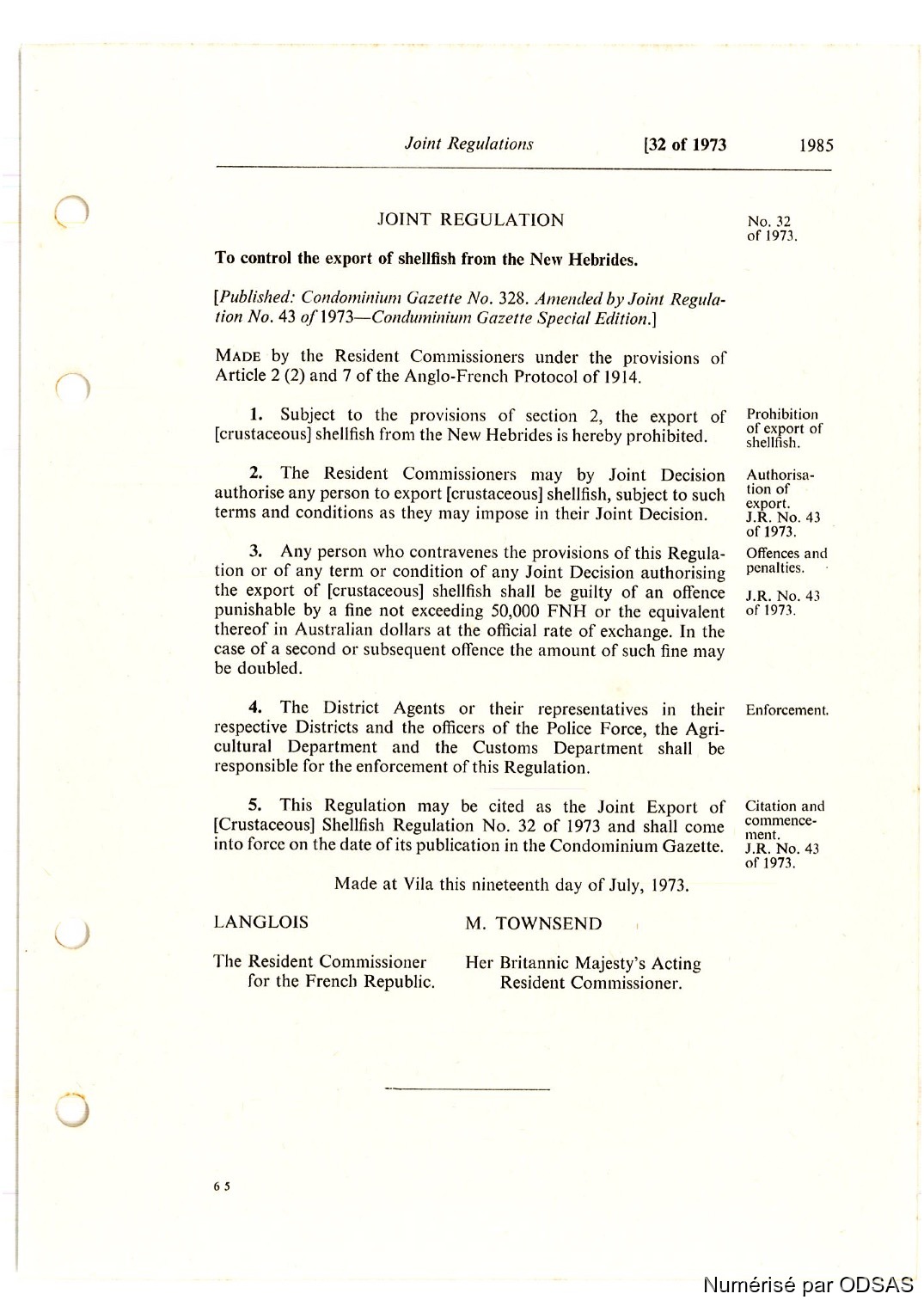 Règlementation Conjointe des Nouvelles-Hébrides...