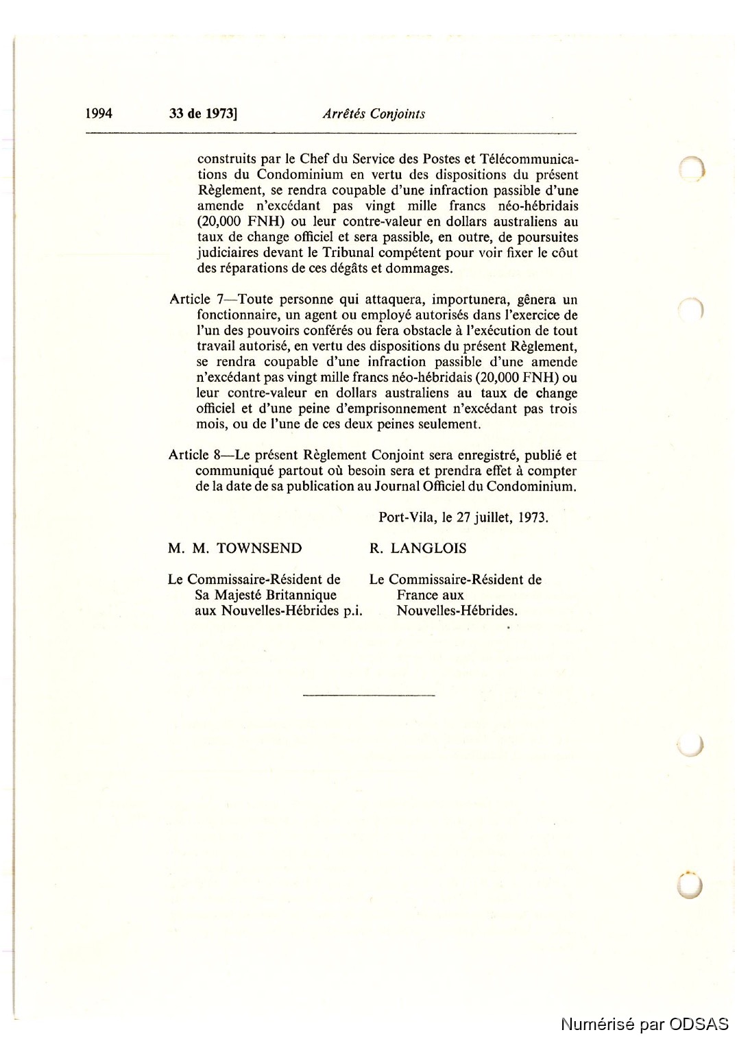 Règlementation Conjointe des Nouvelles-Hébrides...