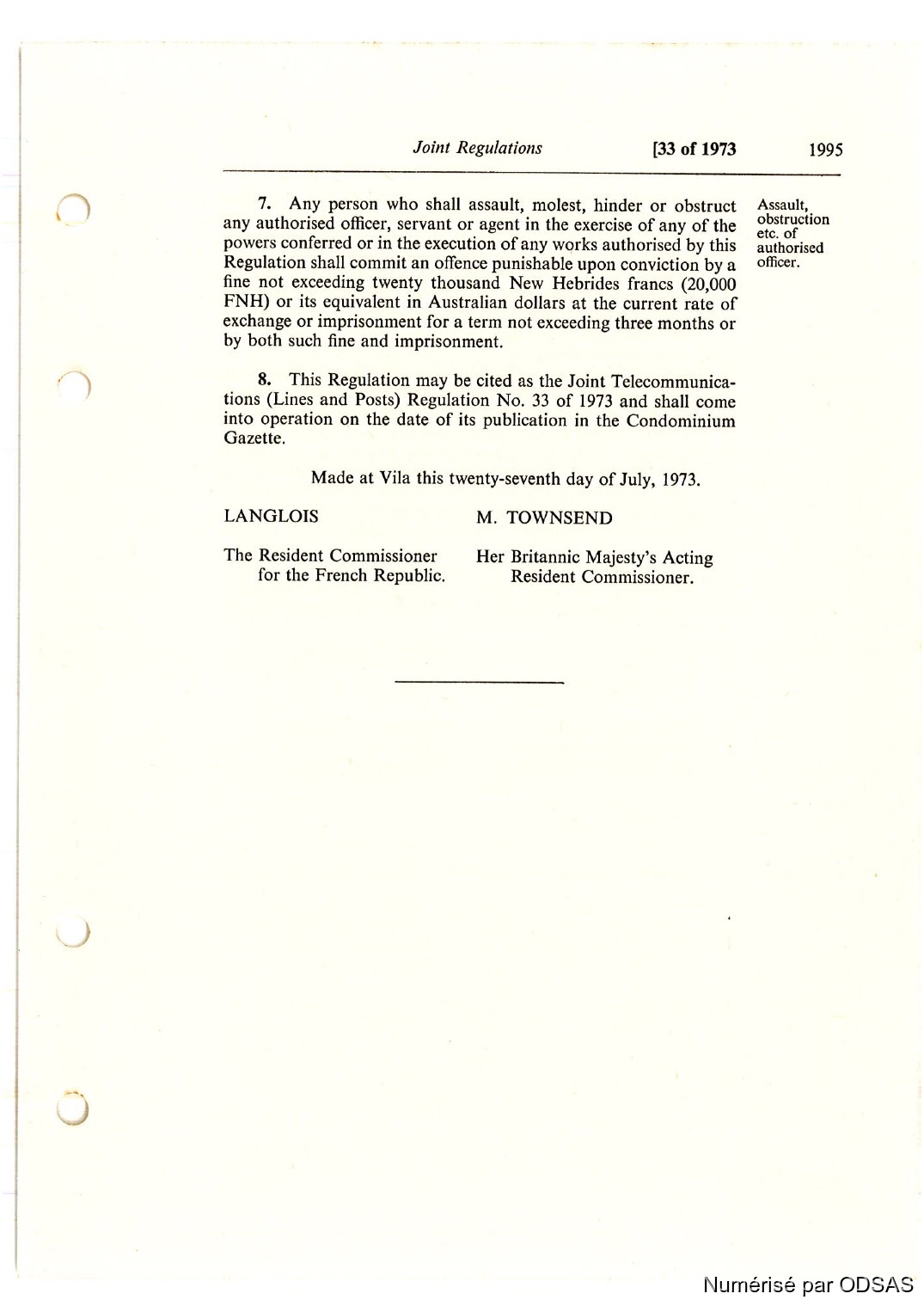 Règlementation Conjointe des Nouvelles-Hébrides...