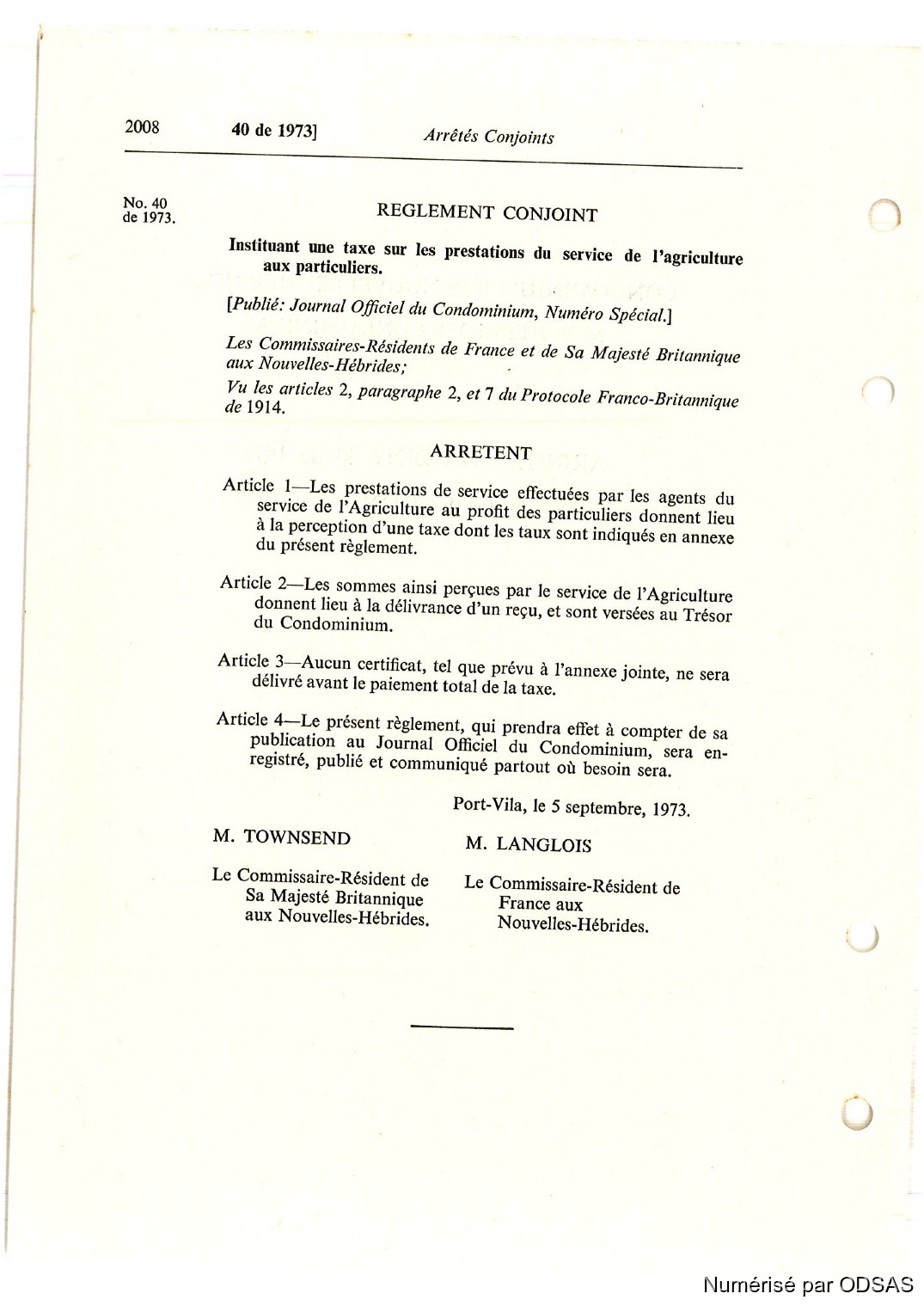 Règlementation Conjointe des Nouvelles-Hébrides...