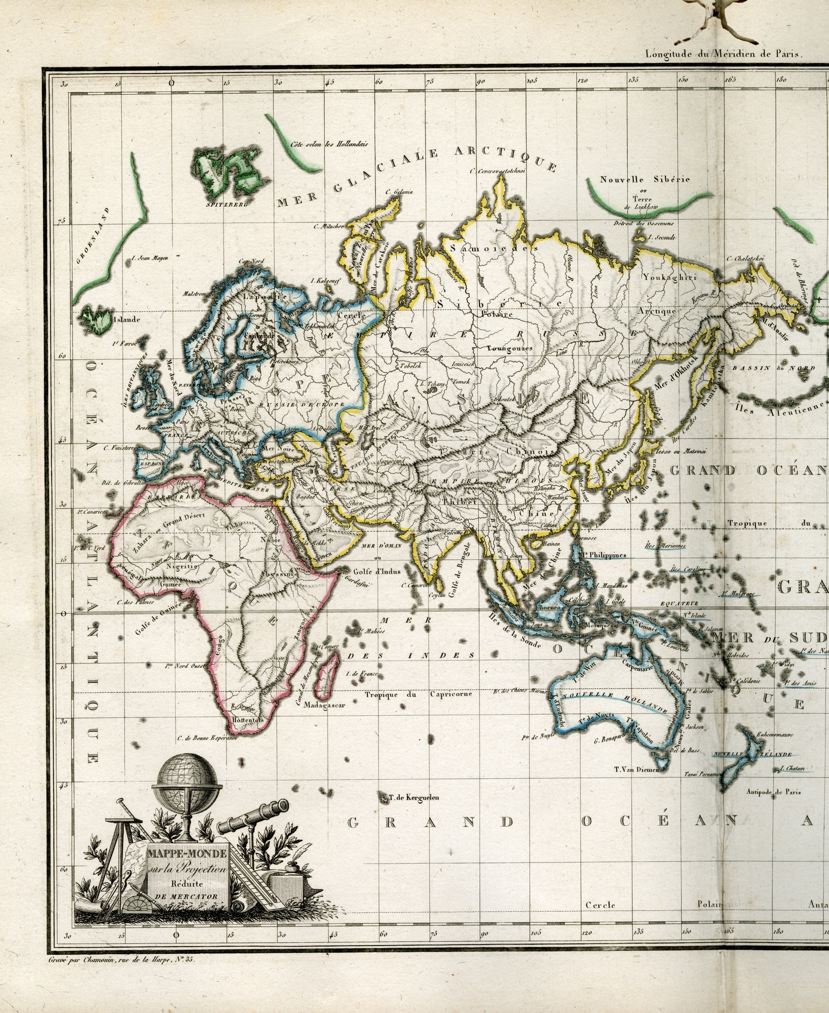 Atlas supplémentaire du Précis de la Géographie Universelle, Malte-Brun, 1812 / Mappe-Monde sur la Projection réduite de Mercator (partie 1) / Lapie, Pierre M.; Malte-Brun, Conrad / Globe