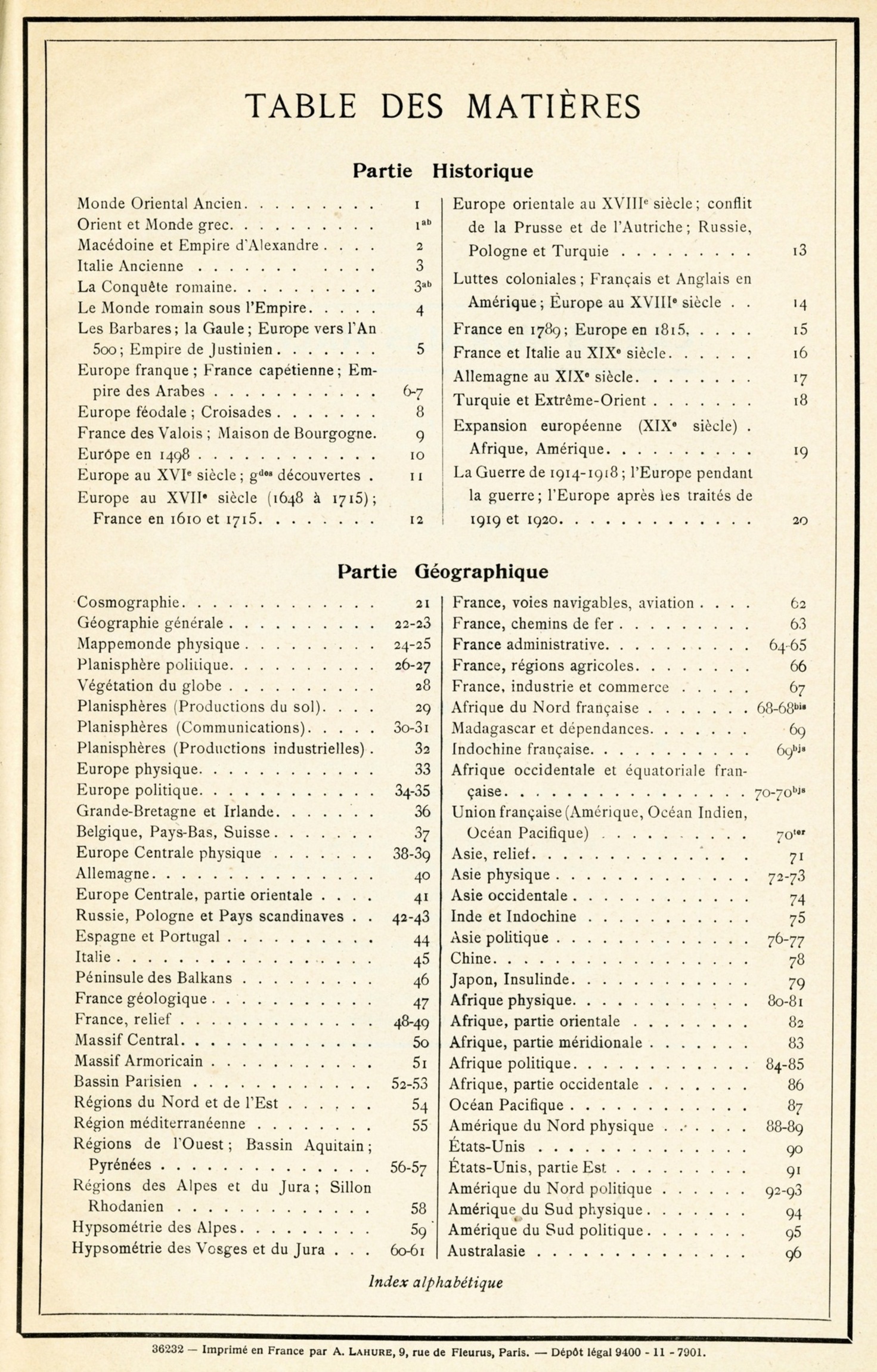 Gallouèdec, Louis; Schrader, Franz 1936-1948 [accessed: 2026/2/5]. "Table des Matières" (Object Id: 23611). In