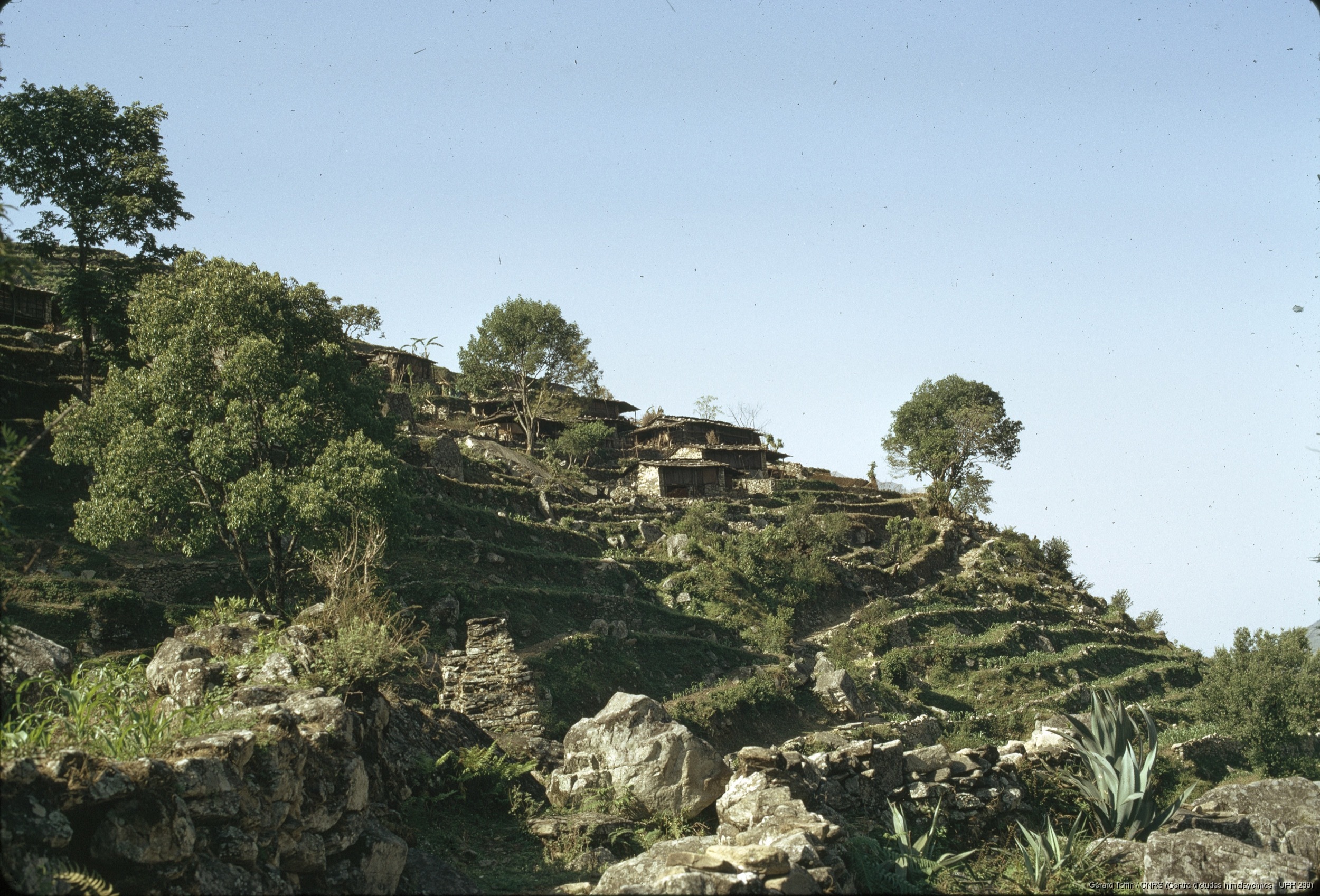 Quote this document Toffin, Gérard 1974 [accessed: 2026/2/5]. "Village tamang avec toits en bardeaux et cultures en terrasses" (Object Id: 253157). In Album Tamang (1974-1985). ODSAS: https://www.odsas.net/object/253157.
