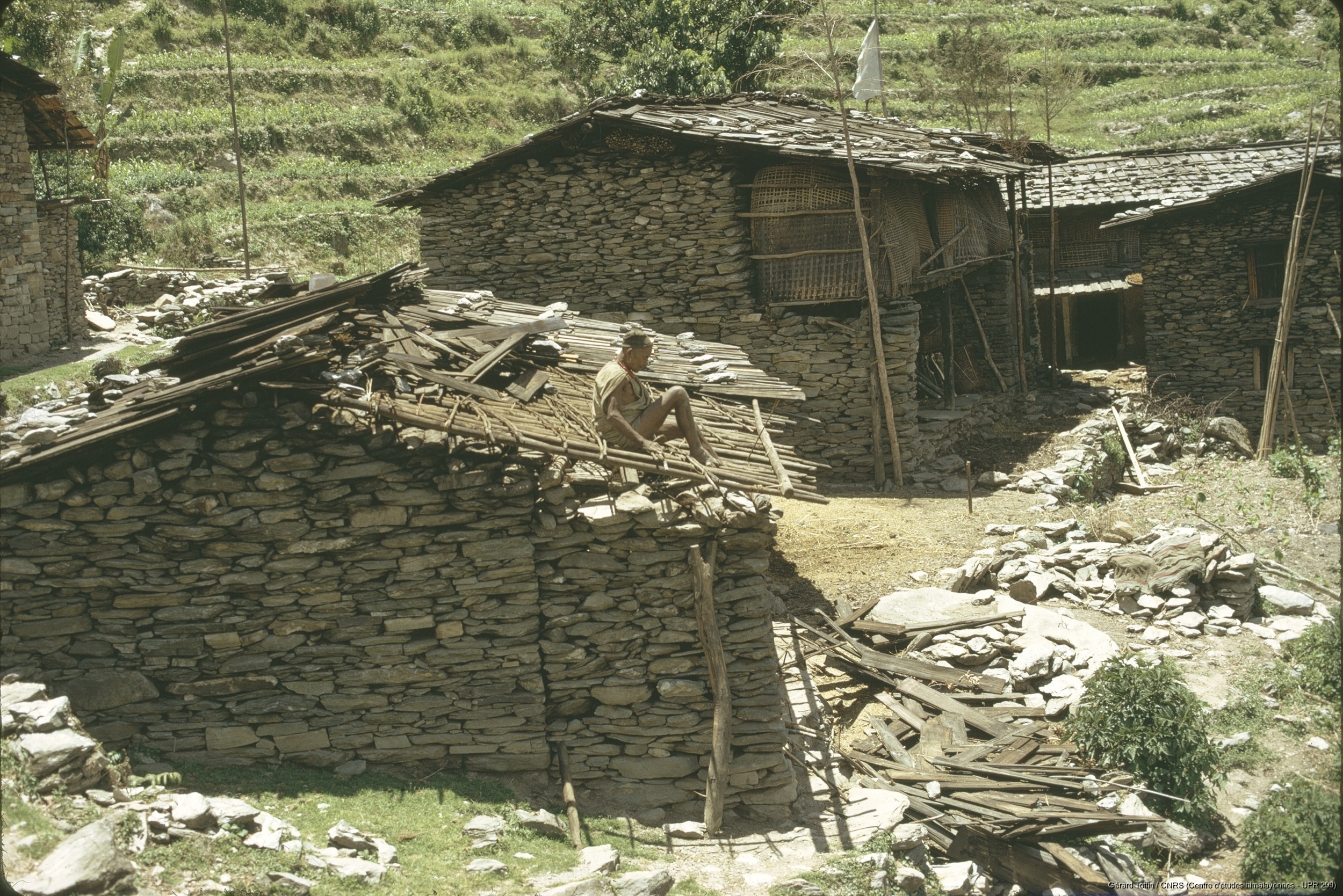 Quote this document Toffin, Gérard 1974 [accessed: 2026/2/5]. "Réfection d'un toit en bardeaux " (Object Id: 253184). In Album Tamang (1974-1985). ODSAS: https://www.odsas.net/object/253184.