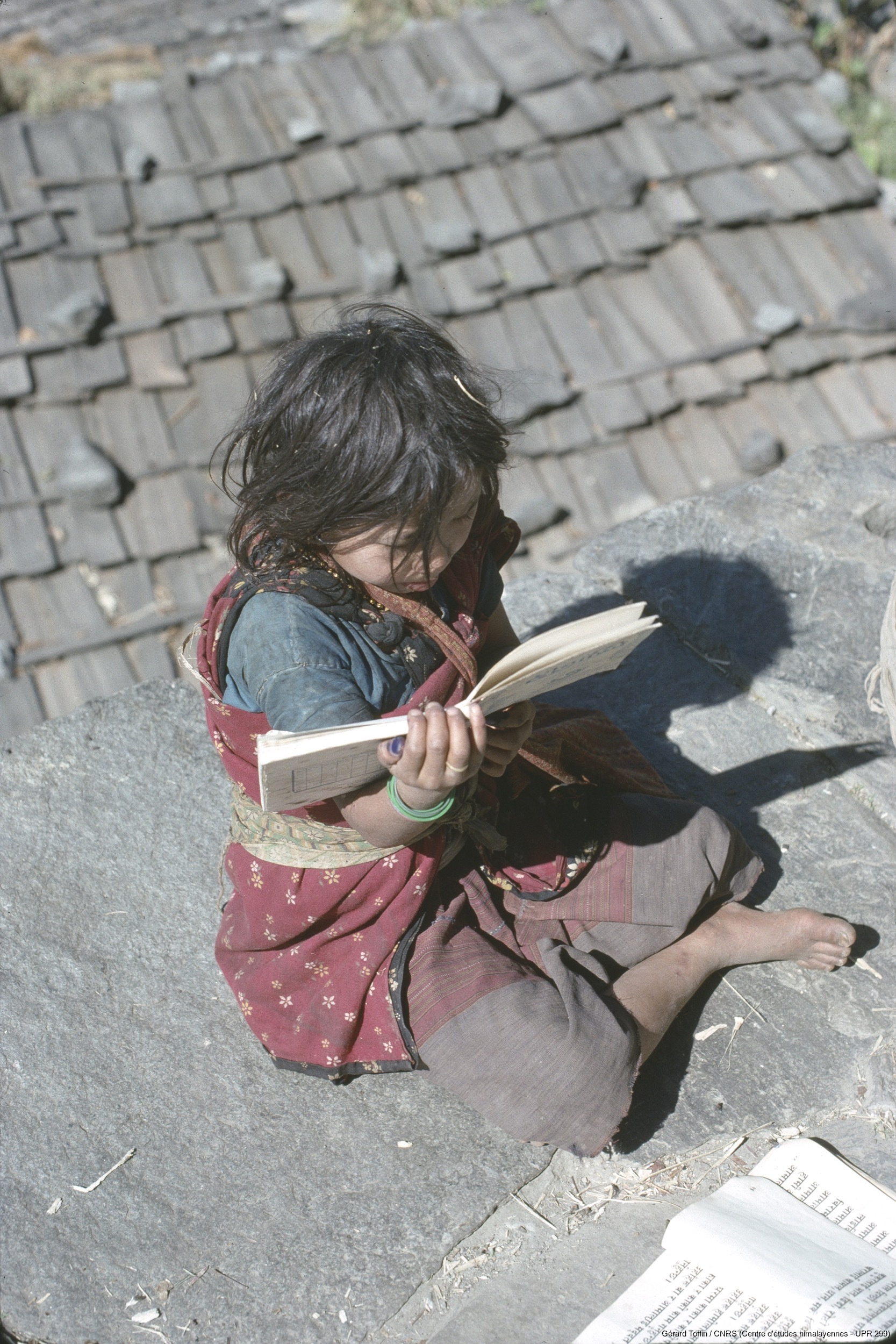 Album Tamang (1974-1985) / Fillette Tamang, à l'école en plein air de Barang  / Toffin, Gérard  / Barang (Dhading district), Népal