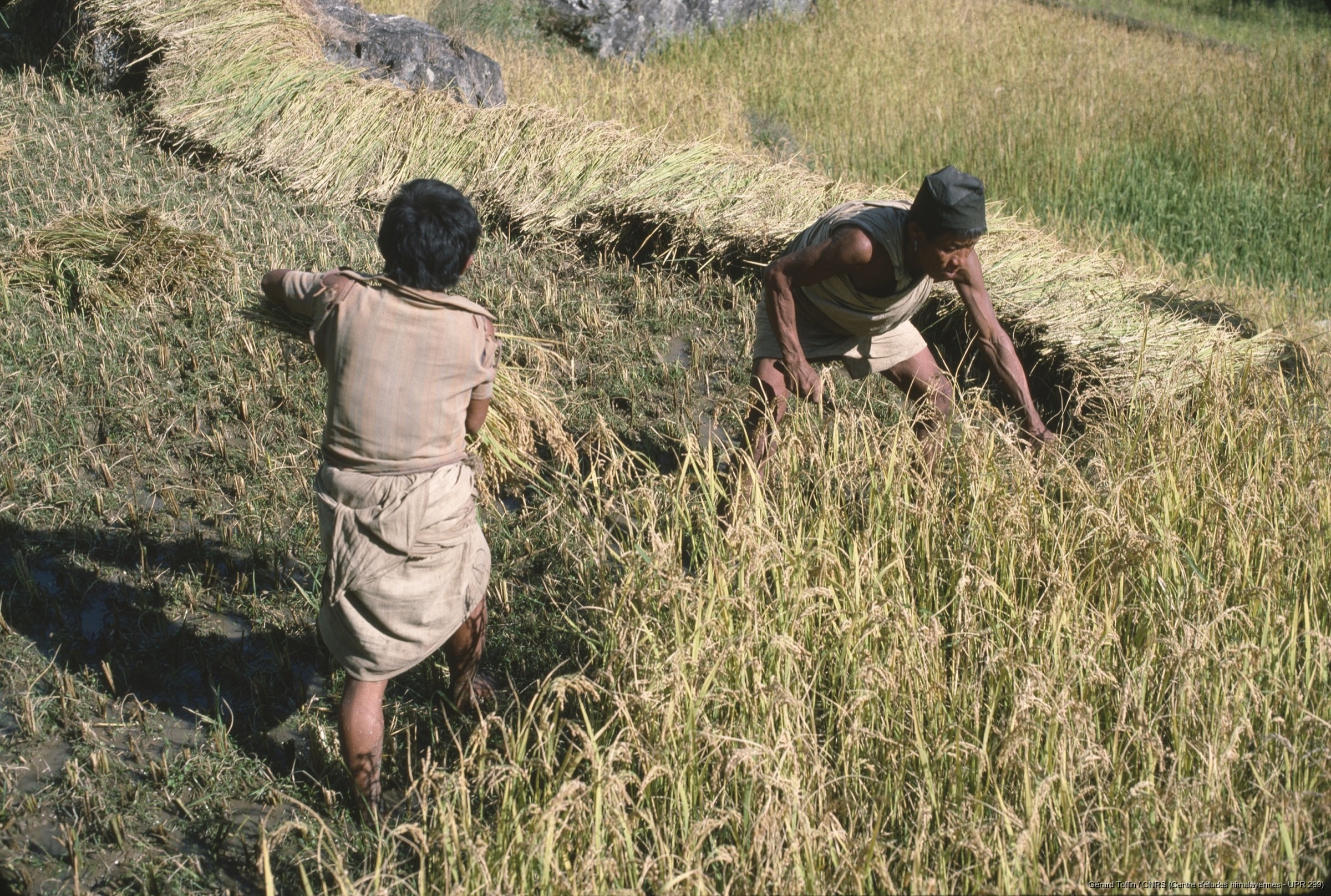 Quote this document Toffin, Gérard 1983 [accessed: 2026/2/5]. "Hommes récoltant à la faucille " (Object Id: 253441). In Album Tamang (1974-1985). ODSAS: https://www.odsas.net/object/253441.
