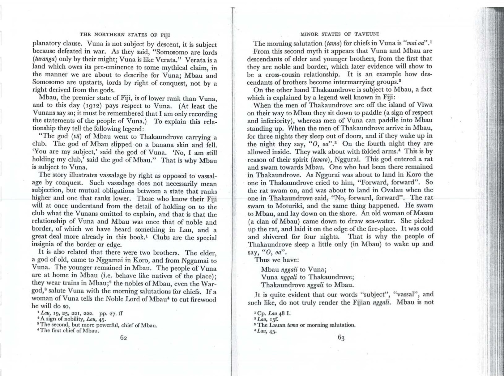 Hocart, Arthur M. 1952. The Northern States of Fiji. The Royal Anthropological Institute of Great Britain and Ireland, Occasional Publication No. 11.