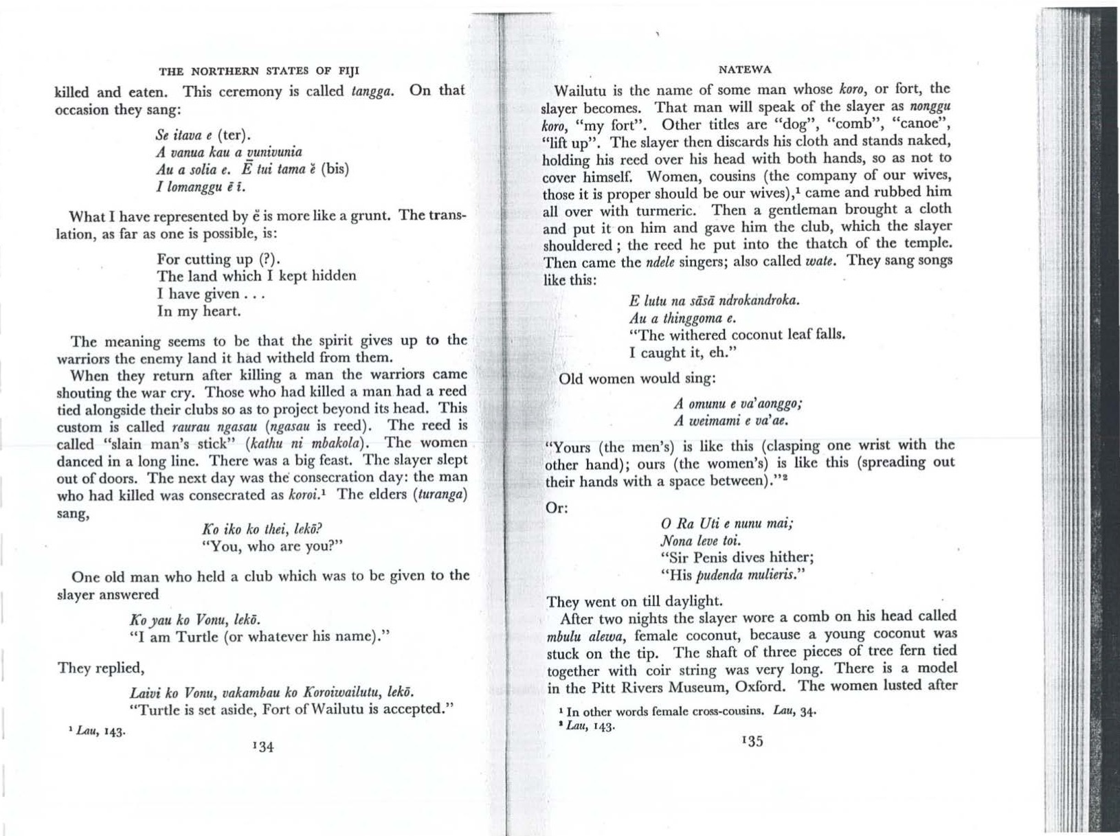 Hocart, Arthur M. 1952. The Northern States of Fiji. The Royal Anthropological Institute of Great Britain and Ireland, Occasional Publication No. 11.