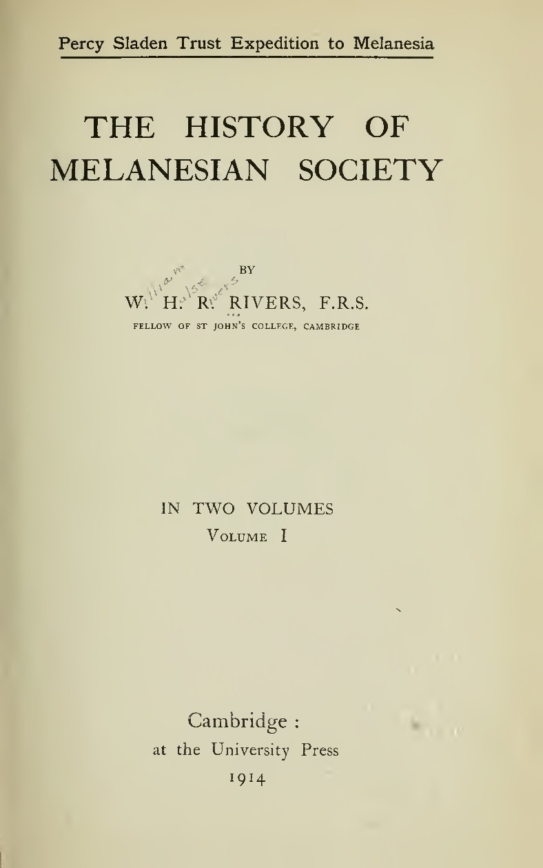Rivers, William Halse Rivers 1914 [accessed: 2026/1/22]. "The history of Melanesian Society (W.H.R. Rivers), Volume 1" (Object Id: 269631). In