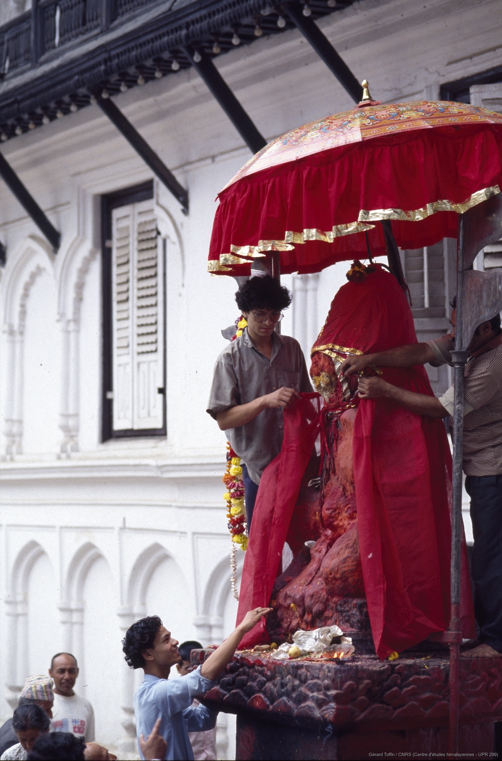 Quote this document Toffin, Gérard 1992 [accessed: 2026/2/5]. "Indra Jatra : changement de la statue d'Hanuman pendant la cérémonie d'érection du mât (1er jour, astrologiquement daté) " (Object Id: 283903). In Album Indra Jatra (1974-2005). ODSAS: https://www.odsas.net/object/283903.