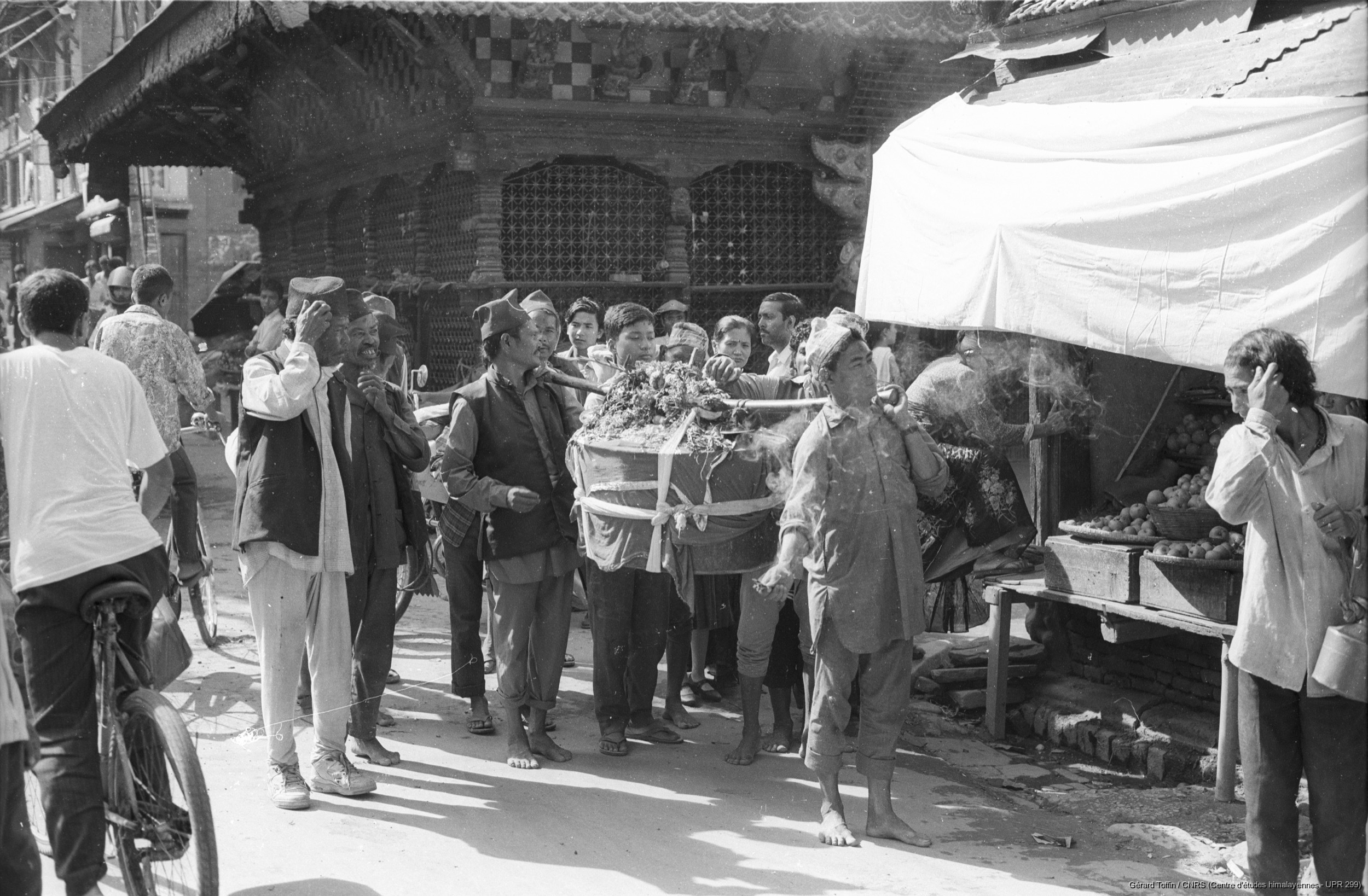 Toffin, Gérard 1995 [accessed: 2026/2/5]. "Indra Jatra : les Putuwâr d'Halchok arrivent dans le quartier de Kilagal, portant le coffre rituel contenant les masques de divinités " (Object Id: 284187). In