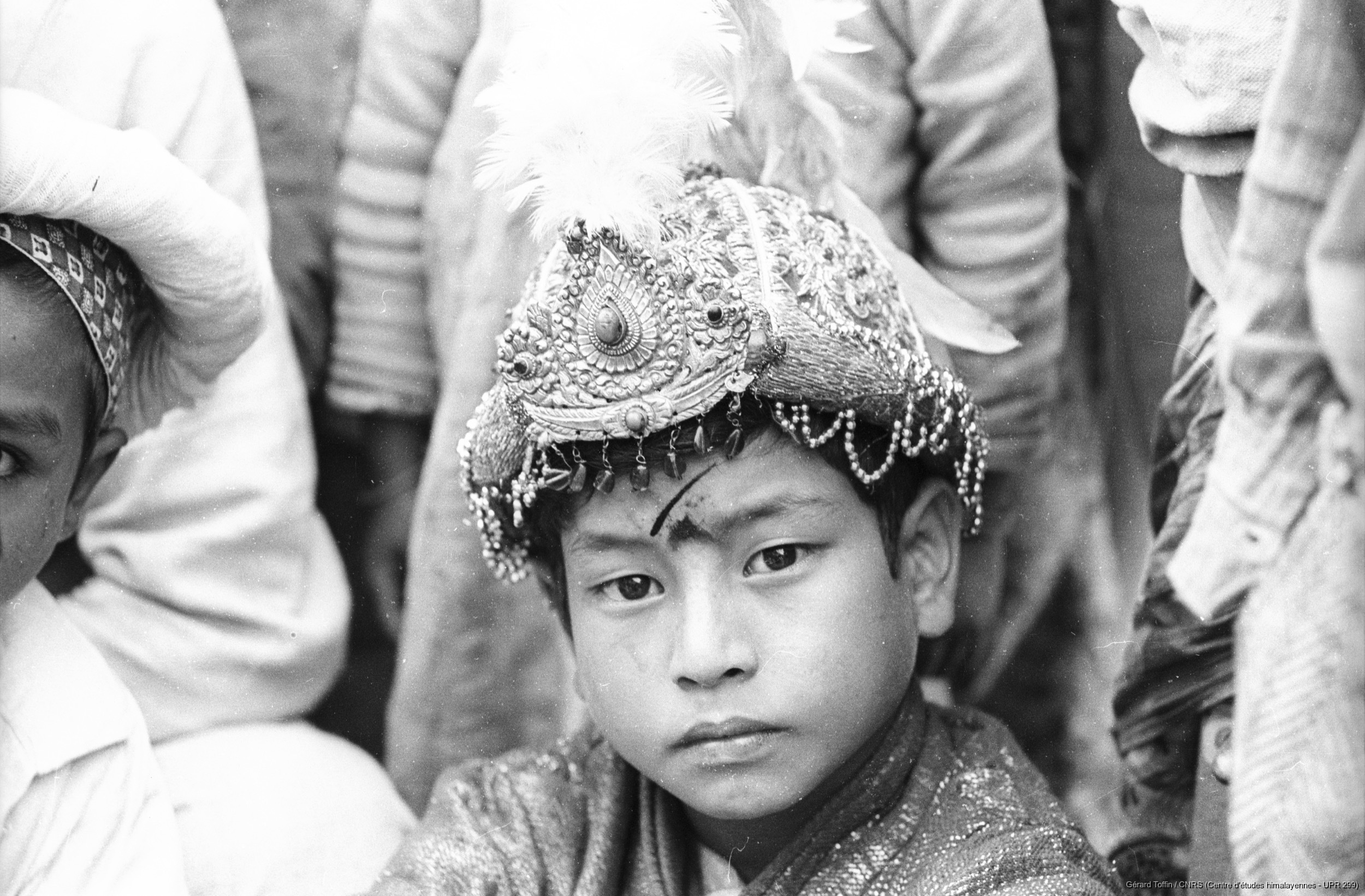 Quote this document Toffin, Gérard 1975 [accessed: 2026/2/5]. ""Kun pyaakhan (kũ pyākhã) lors de l'Indra Jatra : le roi Dharmasturi. La marque noire que l'acteur porte au milieu du front est rituelle ; elle est appelée mohani sihnâ (néw.)". Représentation annuelle du théâtre dansé d'enfants kun pyaakhan (kũ pyākhã) lors de l'Indra Jatra. Interprété par des garçons (moins de 16 ans) choisis parmi les quatre clans shivaïtes fondateurs du village, cet art performatif a aujourd'hui disparu " (Object Id: 284268). In Kun pyaakhan, un théâtre disparu (1971-1975) . ODSAS: https://www.odsas.net/object/284268.