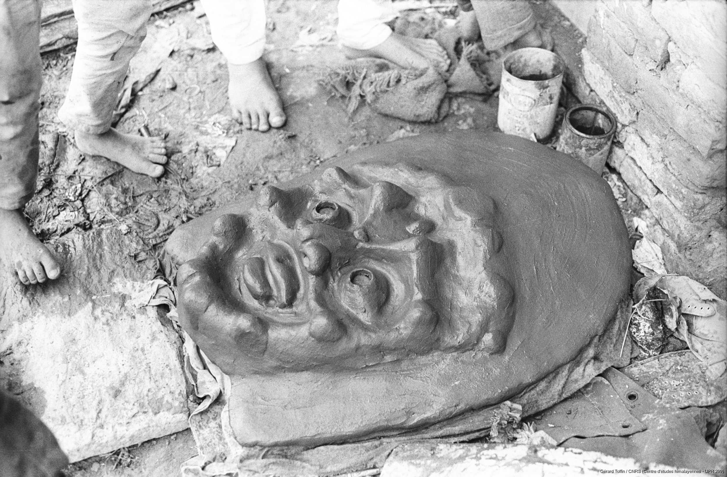 Quote this document Toffin, Gérard 1974 [accessed: 2026/2/5]. "Fabrication de masques rituels par les Citrakar : masque à la fin du modelage et du lissage. Fabrication de masques rituels par la caste des Citrakar ("fabricants d'images"), dans le village de potiers de Thimi" (Object Id: 284311). In Fabrication des masques rituels (1974). ODSAS: https://www.odsas.net/object/284311.