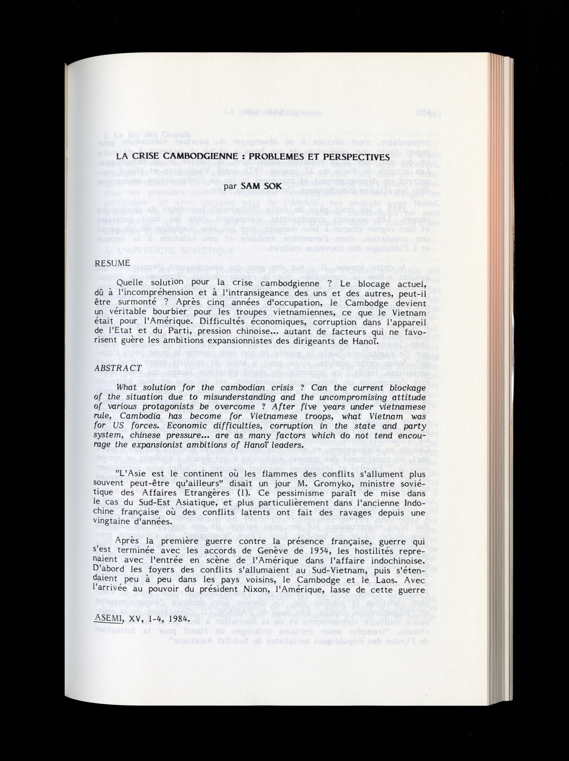 Asie du Sud-Est : Revue ASEMIASEMI 1984 XV_1_4300320<< >>