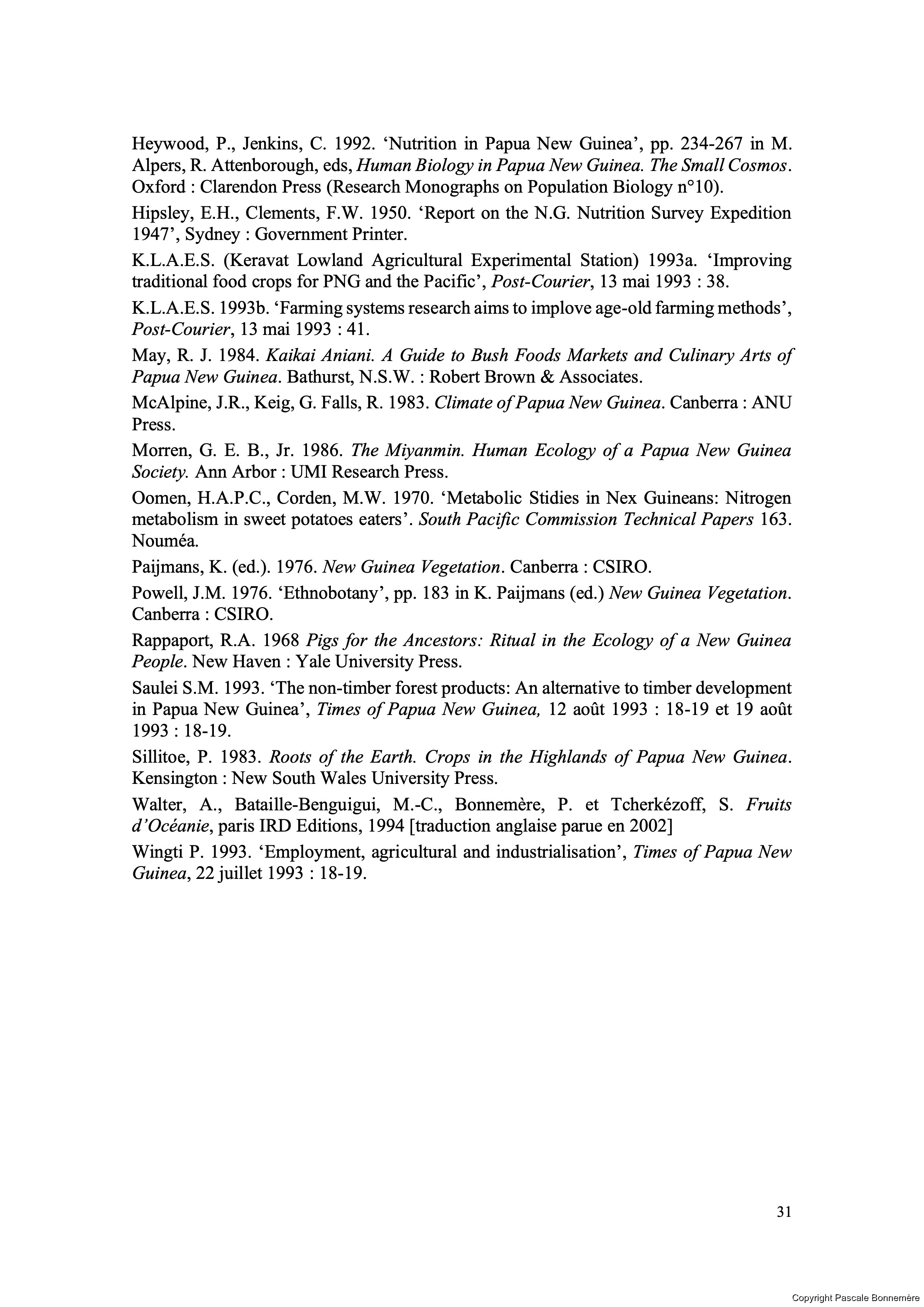 Heywood, P., Jenkins, C. 1992. ‘Nutrition in Papua New Guinea”, pp. 234-267 in M.