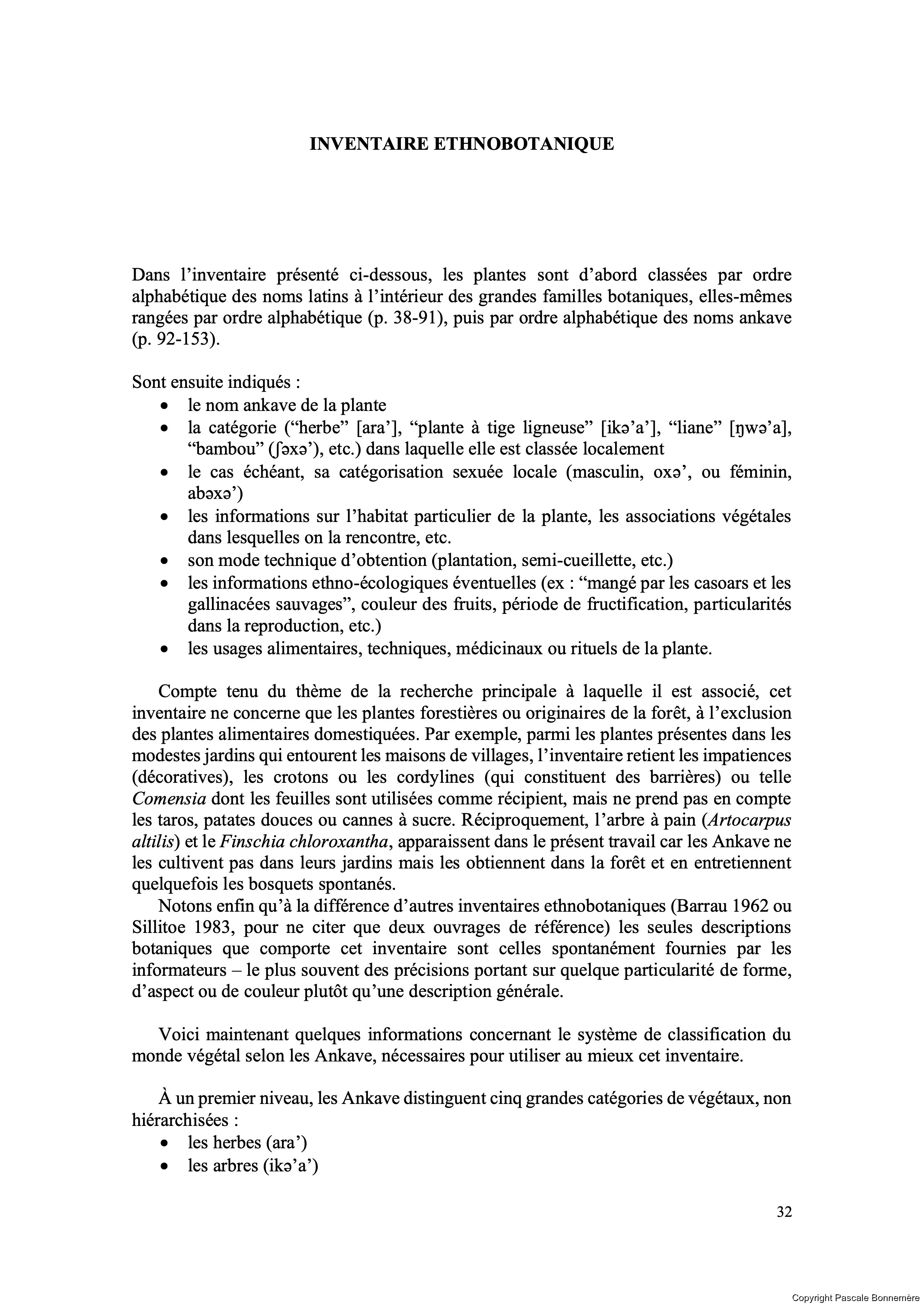 monde végétal selon les Ankave, nécessaires pour utiliser au mieux cet inventaire.