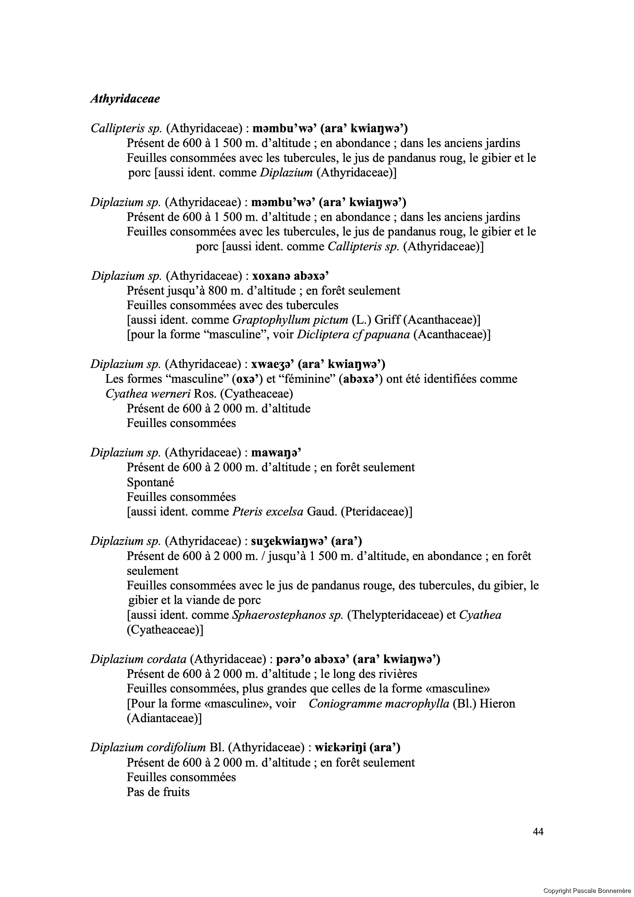 Callipteris sp. (Athyridaceae) : mombu”wo’ (ara” kwian wo”)