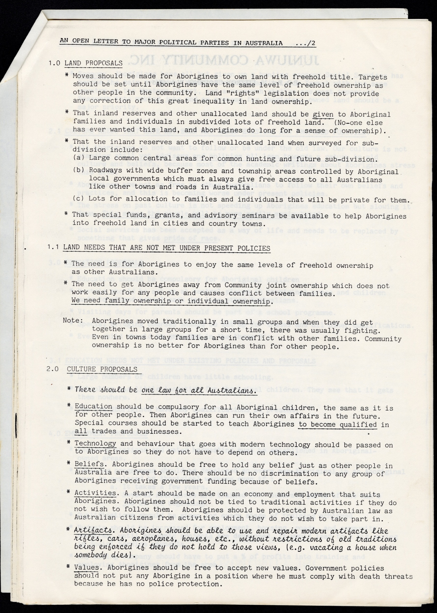 [accessed: 2026/4/29]. "An open letter to political parties and leaders in Australia from The Goldfields & Western Desert Christian Aborignal Movement" (Object Id: 313567). In