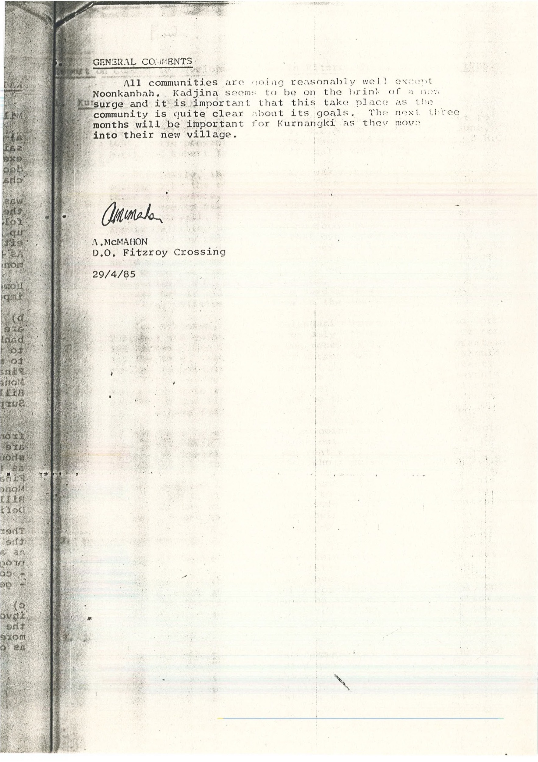 McMahon, A 1985-04-29 [accessed: 2026/2/5]. "Report on Community Development work in Fitzroy Crossing." (Object Id: 314018). In
