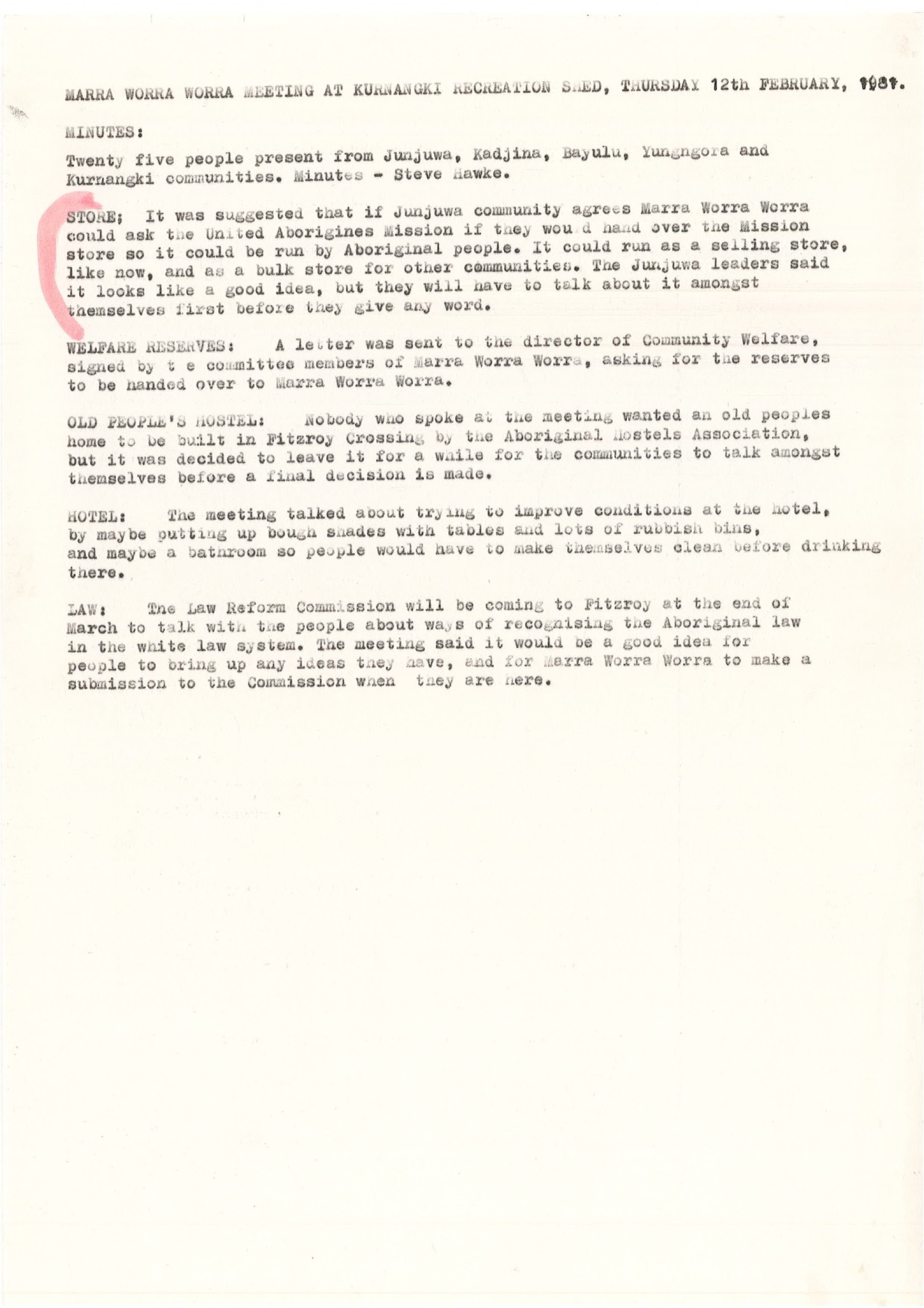 Quote this document 1980-1985 [accessed: 2026/2/5]. "Marra Worra Worra Minutes 1980/1985" (Object Id: 314071). In Marra Worra Worra Minutes 1980/1985. ODSAS: https://www.odsas.net/object/314071.